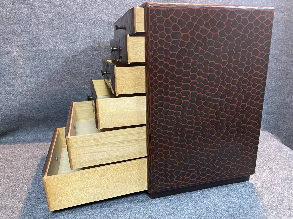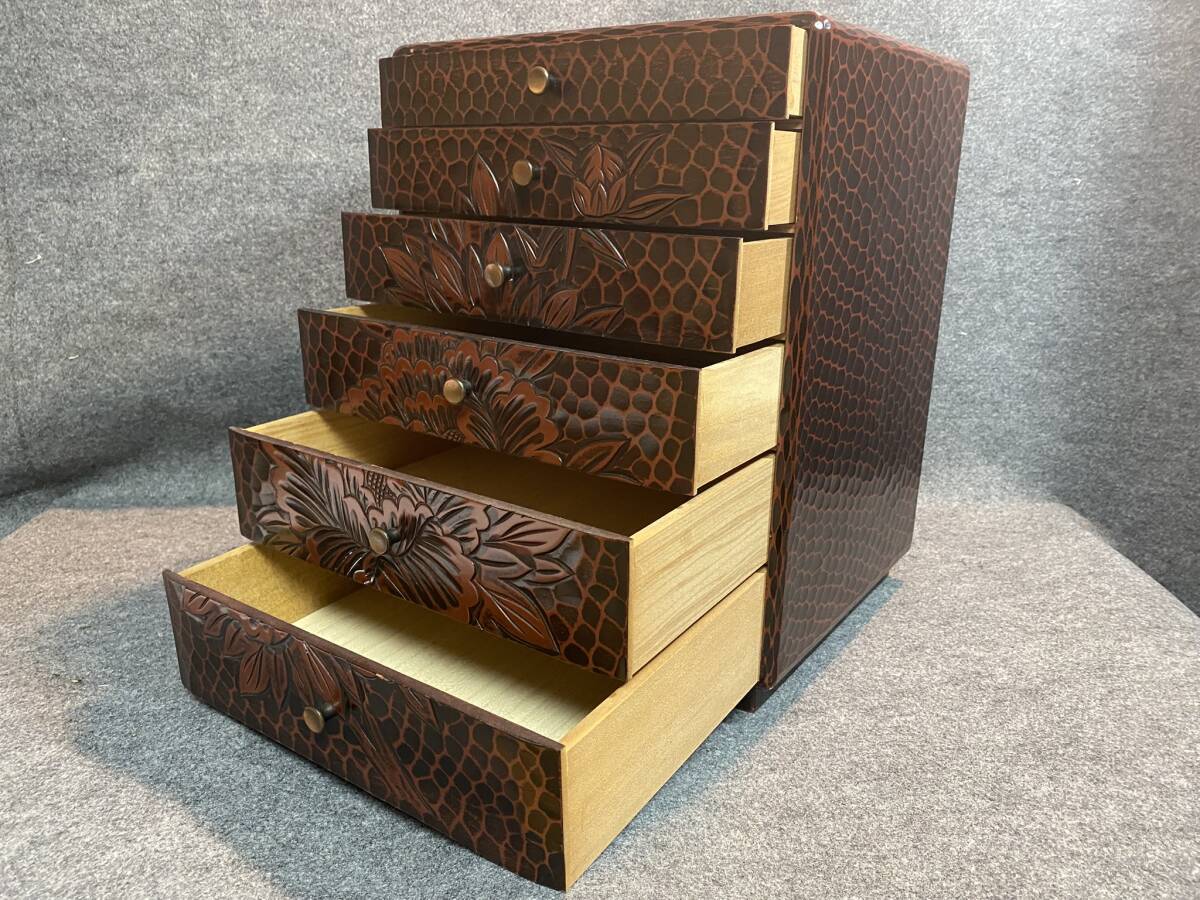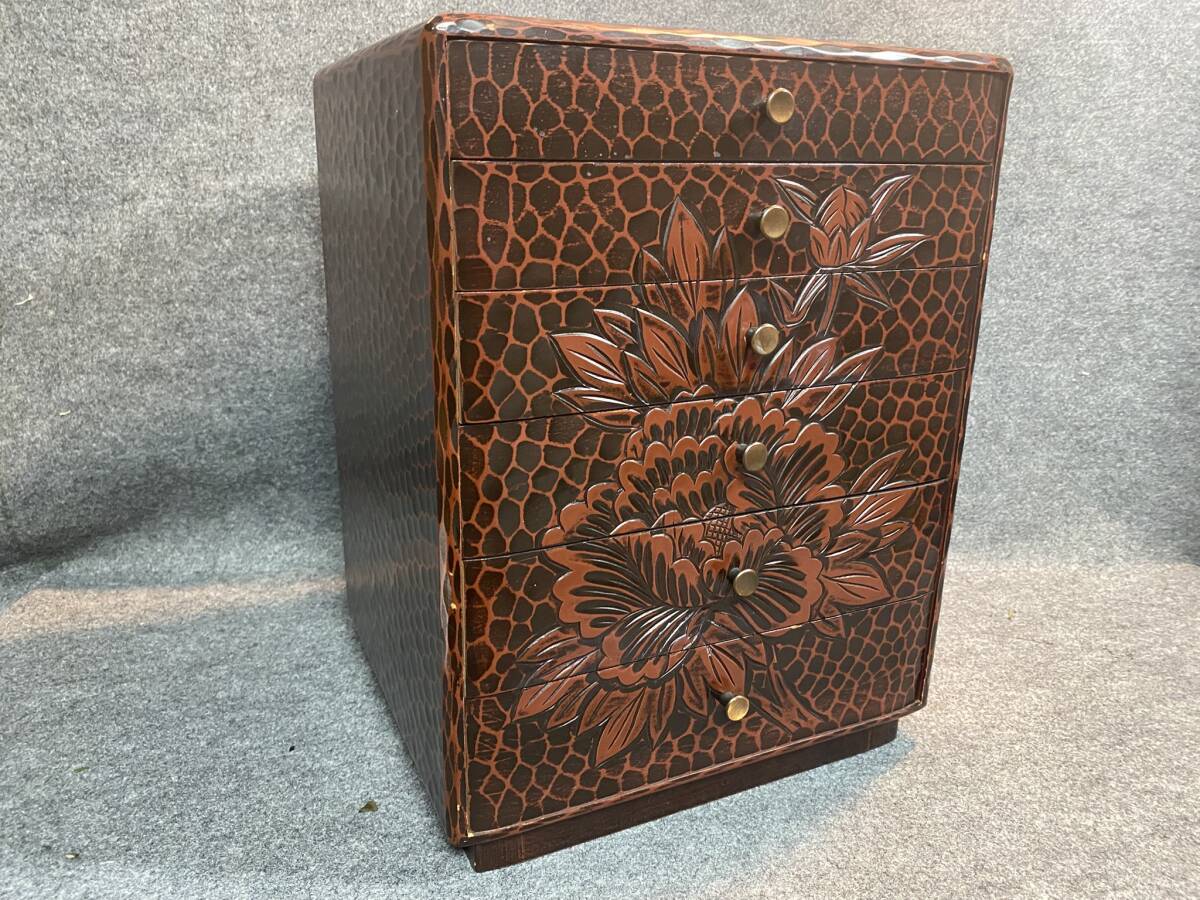 ご覧頂きありがとうございます。 【漆器】伝統工芸品 鎌倉彫 引き出し 小箪笥 小物入れ 高さ約39㎝ 横幅約30㎝ 奥行約26cm