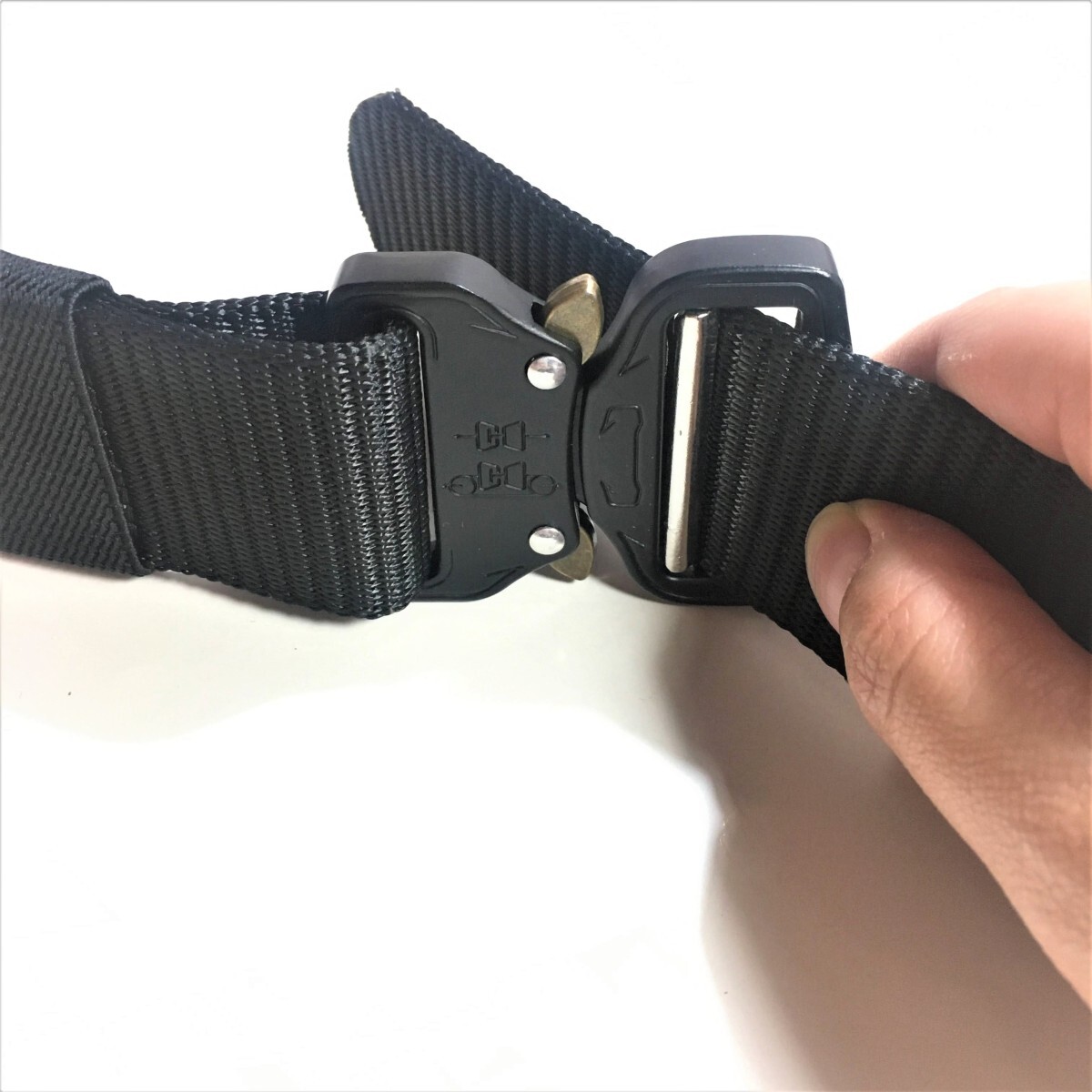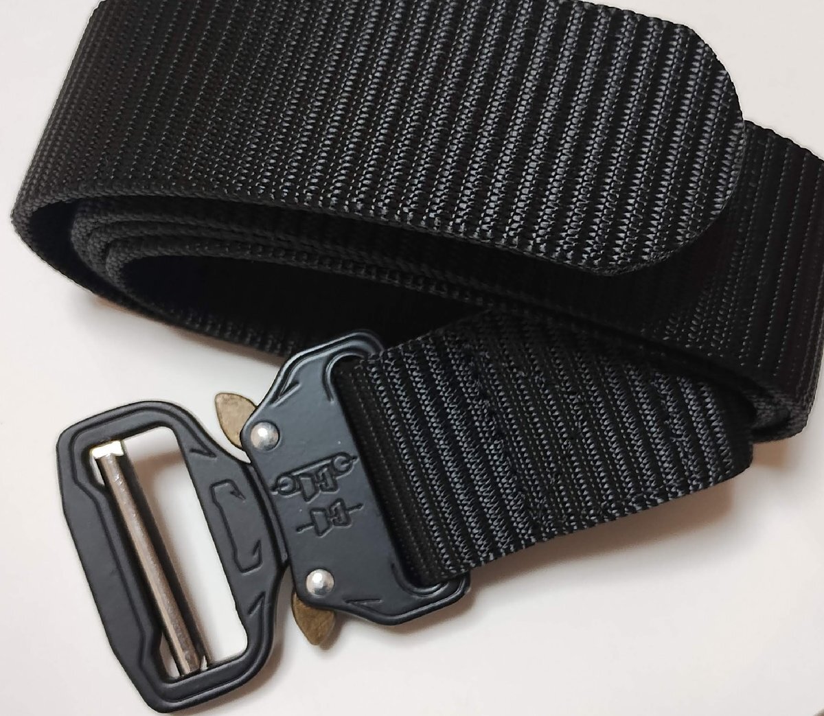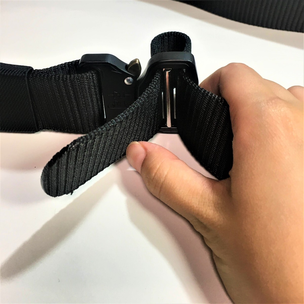 【 タクティカルベルト 黒色 1本 】◆送料無料◆バックルが簡単に着脱できる全体の長さ:約125 cmベルト部分長さ:約116cmベルト部分幅:約4mmバックル部分長さ:約6cmバックル部分幅:約7mm重量:約 200g素材:ナイロンタクティカルベルトは軍事用に使われるベルトです。耐久性に優れているのが特徴です。ベルト部分はナイロンで、バックル部分は少し厚みのある金属になっています。使い方は通常のベルトと同じで、ズボンに通して使用して下さい。普段使いはもちろん、サバゲーやレジャー等でも使えます。ベルト部分にポーチを通して使うことも出来ます。シンプルなデザインなので、スーツやデニムなど服のデザインを選びません。着脱も簡単で、バックルの突起のような金具部分を押し込むだけ。トイレに行く際も特に問題ありません。