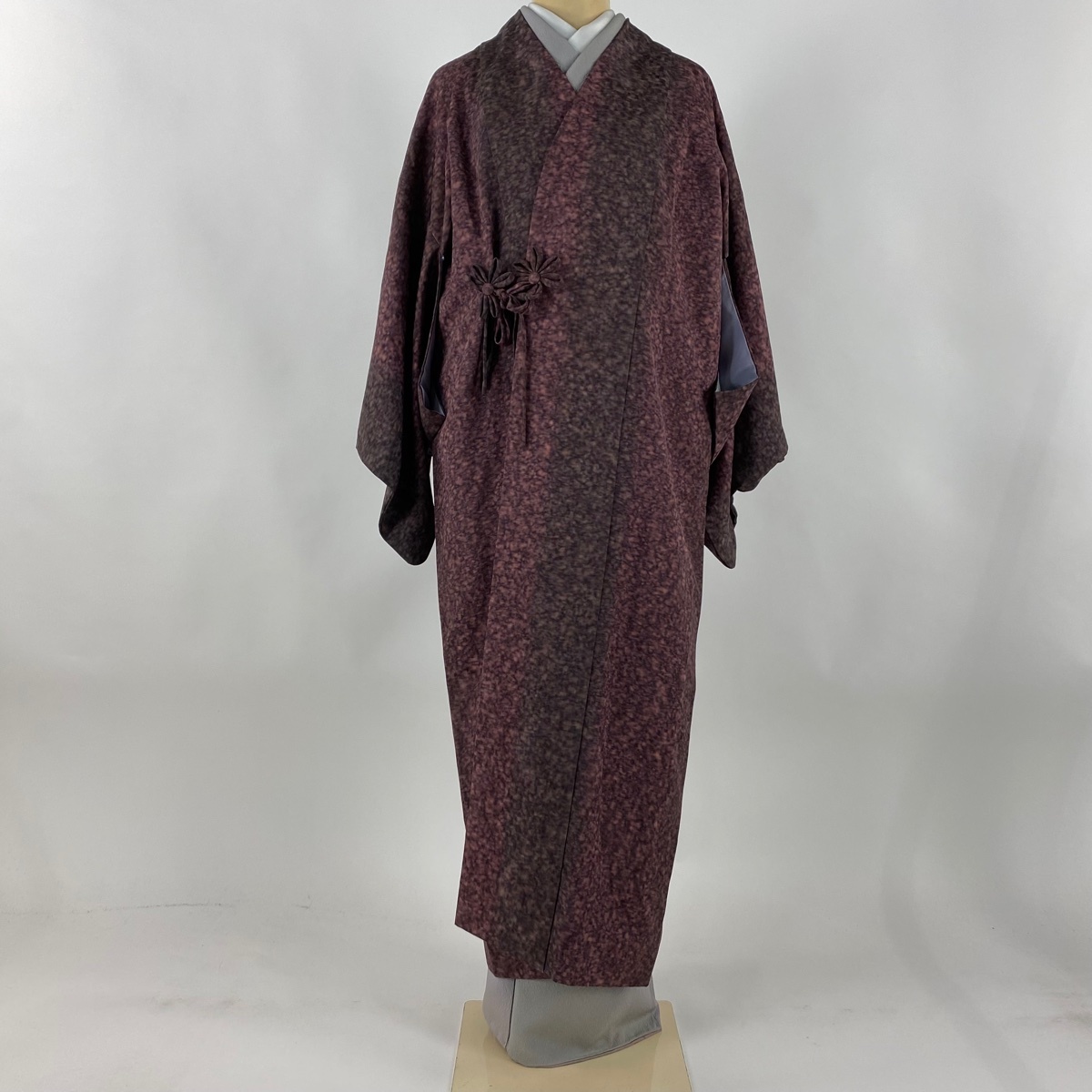 | 道中着 美品 秀品 和装コート 幾何学模様 灰紫 身丈125 裄丈64 M 正絹 【中古】 |