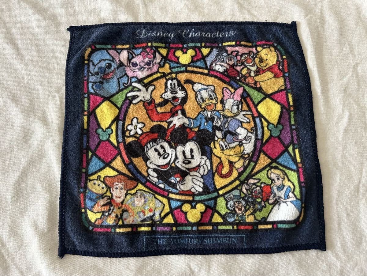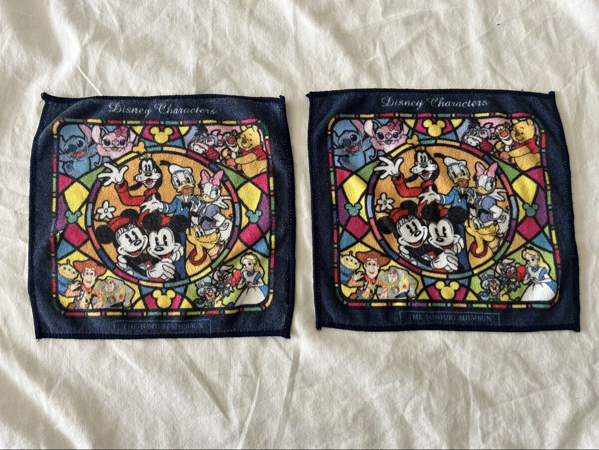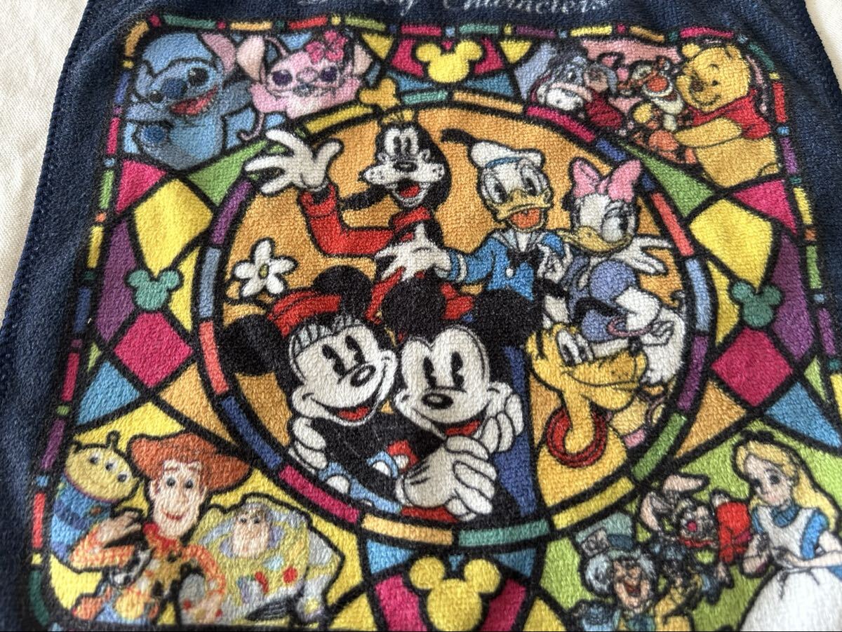 カラフルなディズニーステンドグラスデザインのタオル・ハンカチ2枚セット。