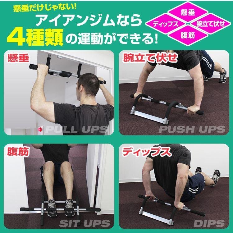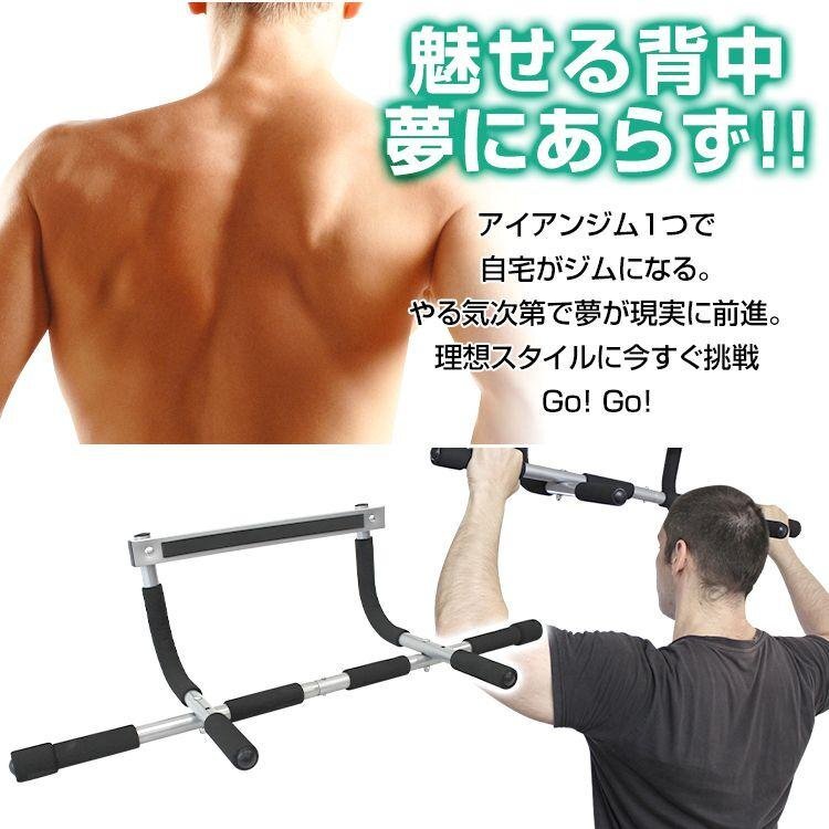 | アイアン・ジムを使えばどんな室内でもジムに大変身! 工夫されたデザインでどんなドア枠にもフィット。 組立も簡単ですので省スペースでお手軽に始めることができます。 胸、腕、肩、背中、使い方次第で様々な部分が鍛えられます。 左右の手の幅の広さに変化をつけることで、腕回りの筋肉を満遍なく強化。 床に置いて、腹筋、腕立て、背筋の運動に! 【仕様】 サイズ:横幅約93cm 重量:約1.8Kg (筋トレ 懸垂 器具 多機能 トレーニング 用品 WM FITNESS)