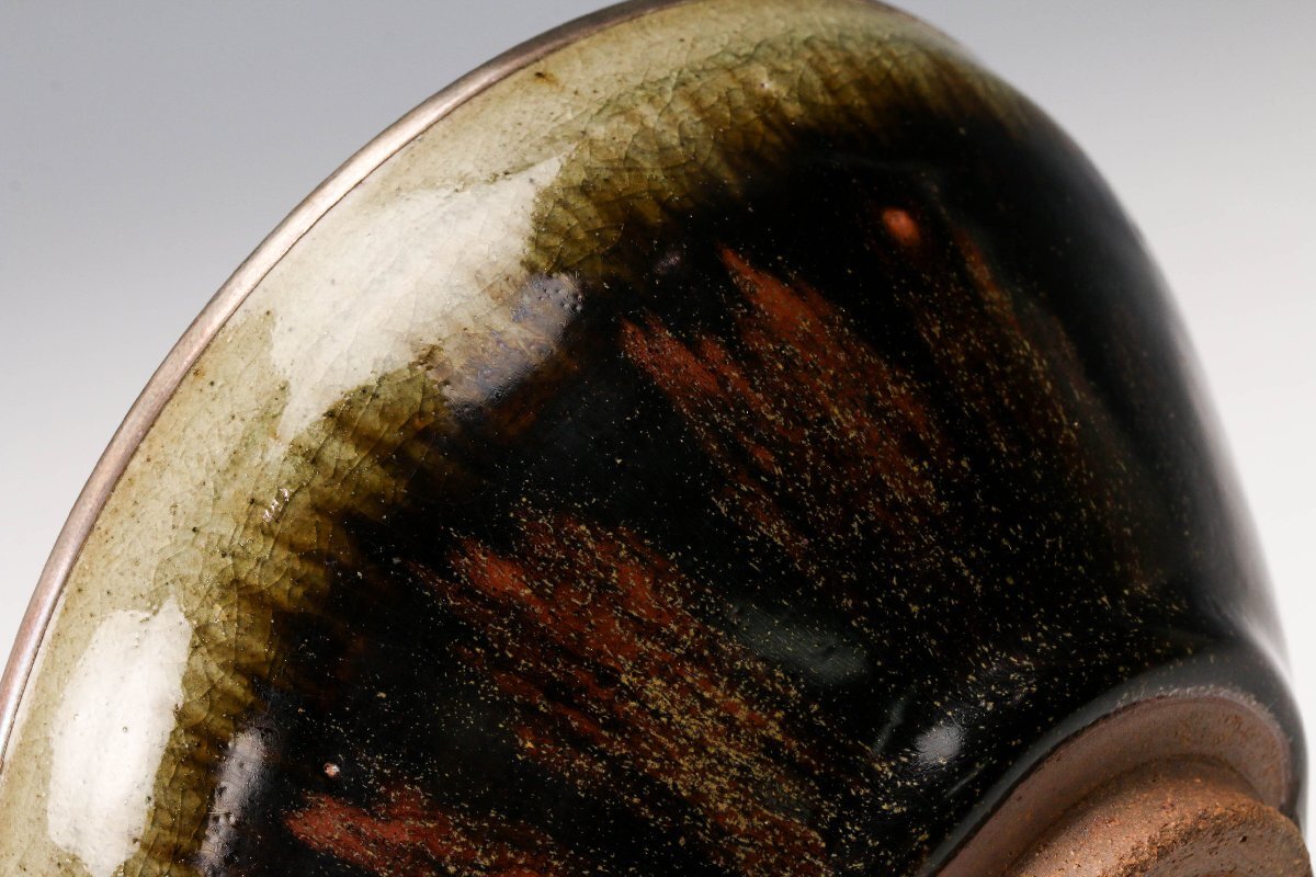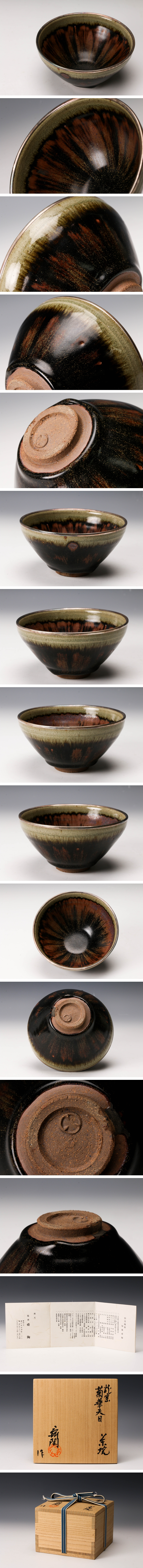【佳香】加藤舜陶 龍窯 菊華天目茶碗 銀覆輪 共箱 栞 茶道具 本物保証