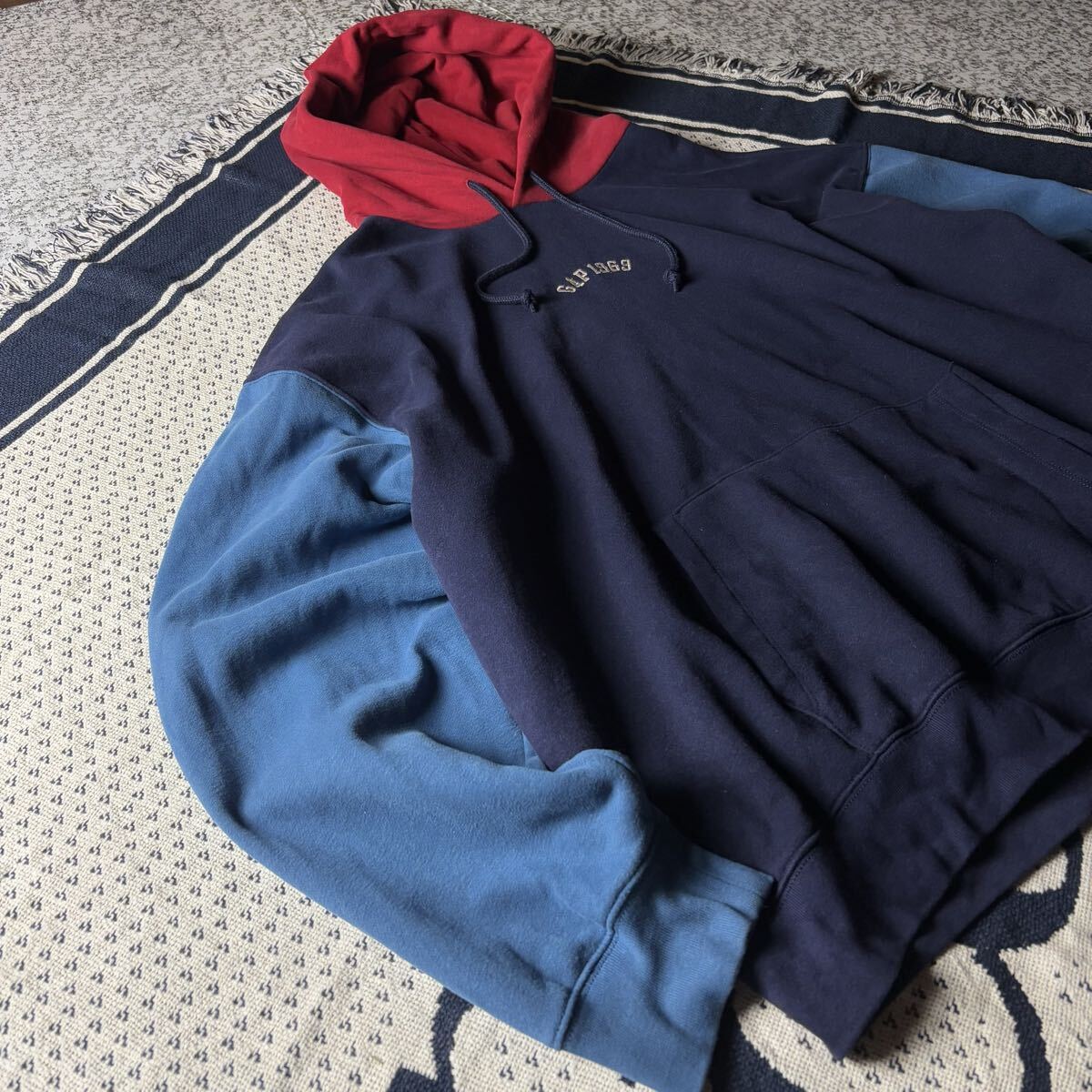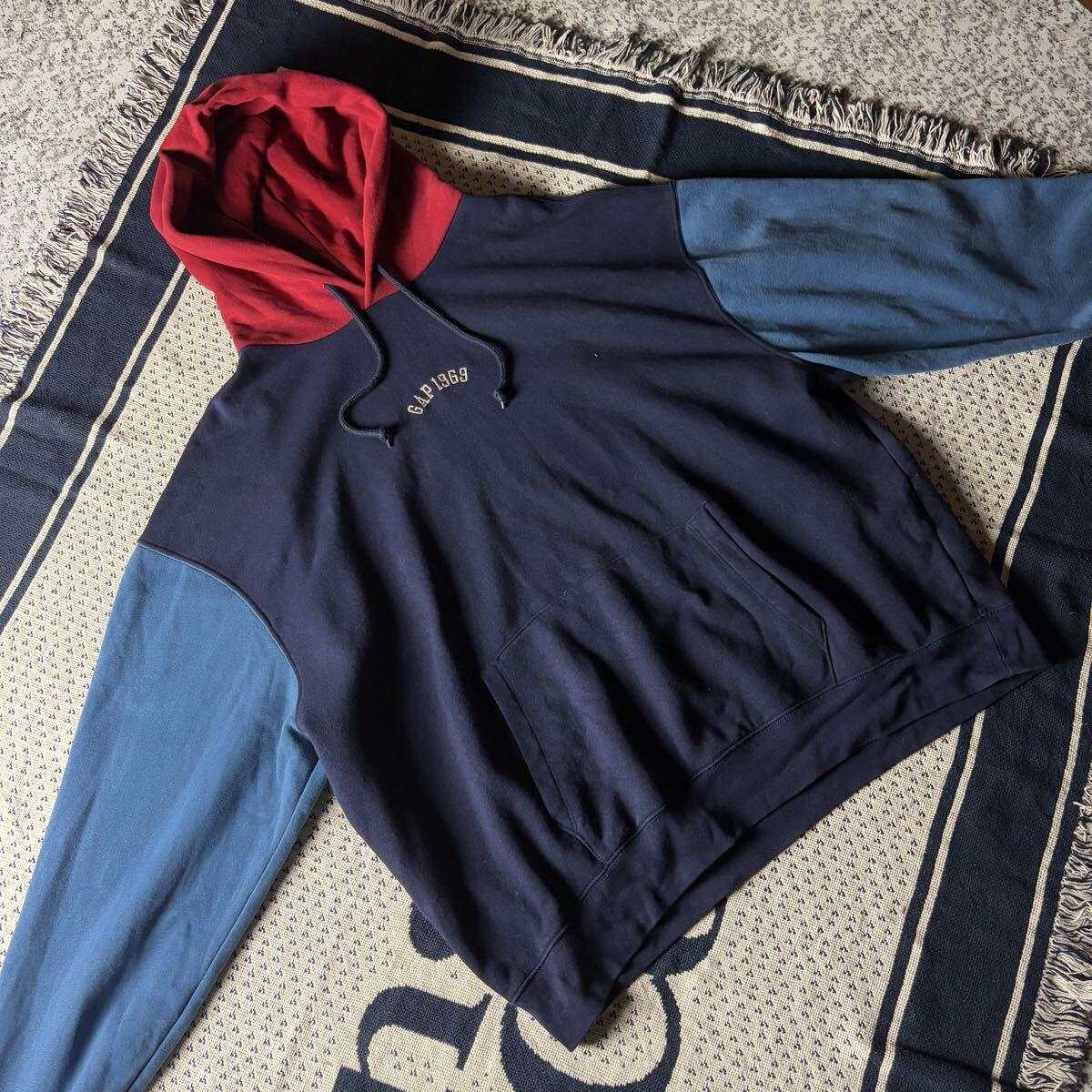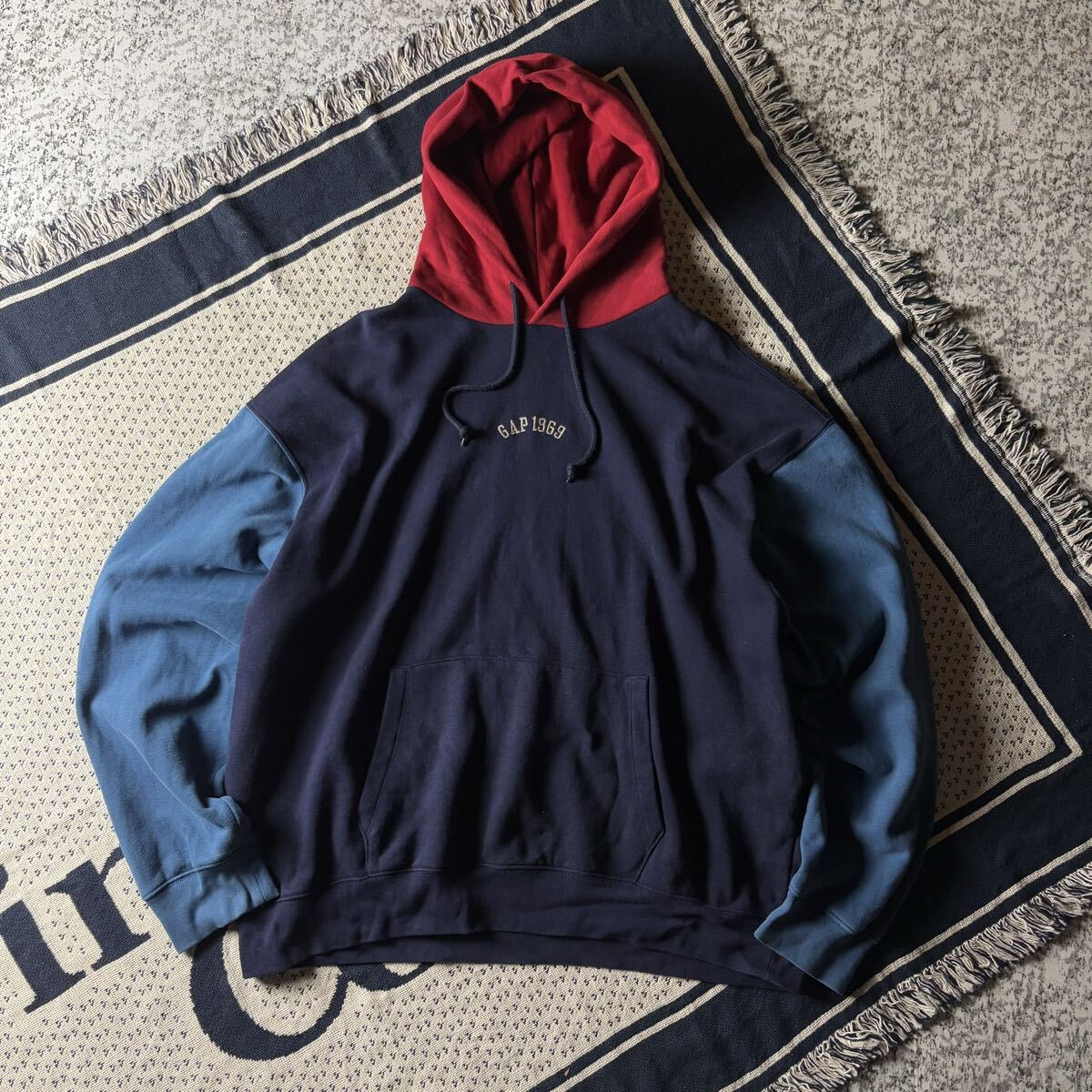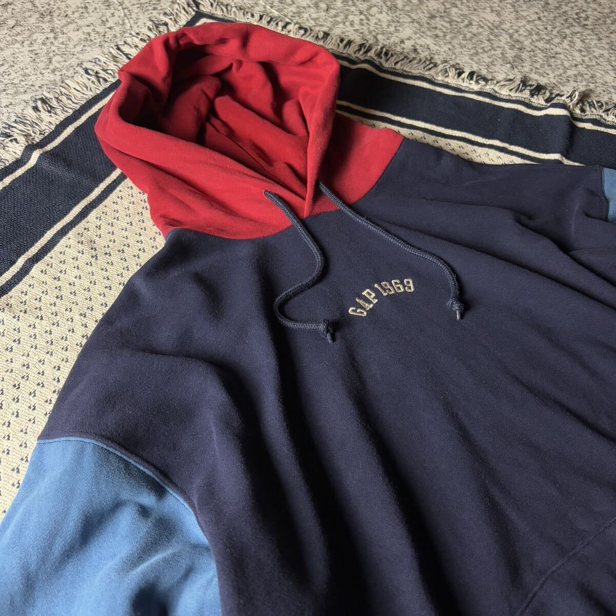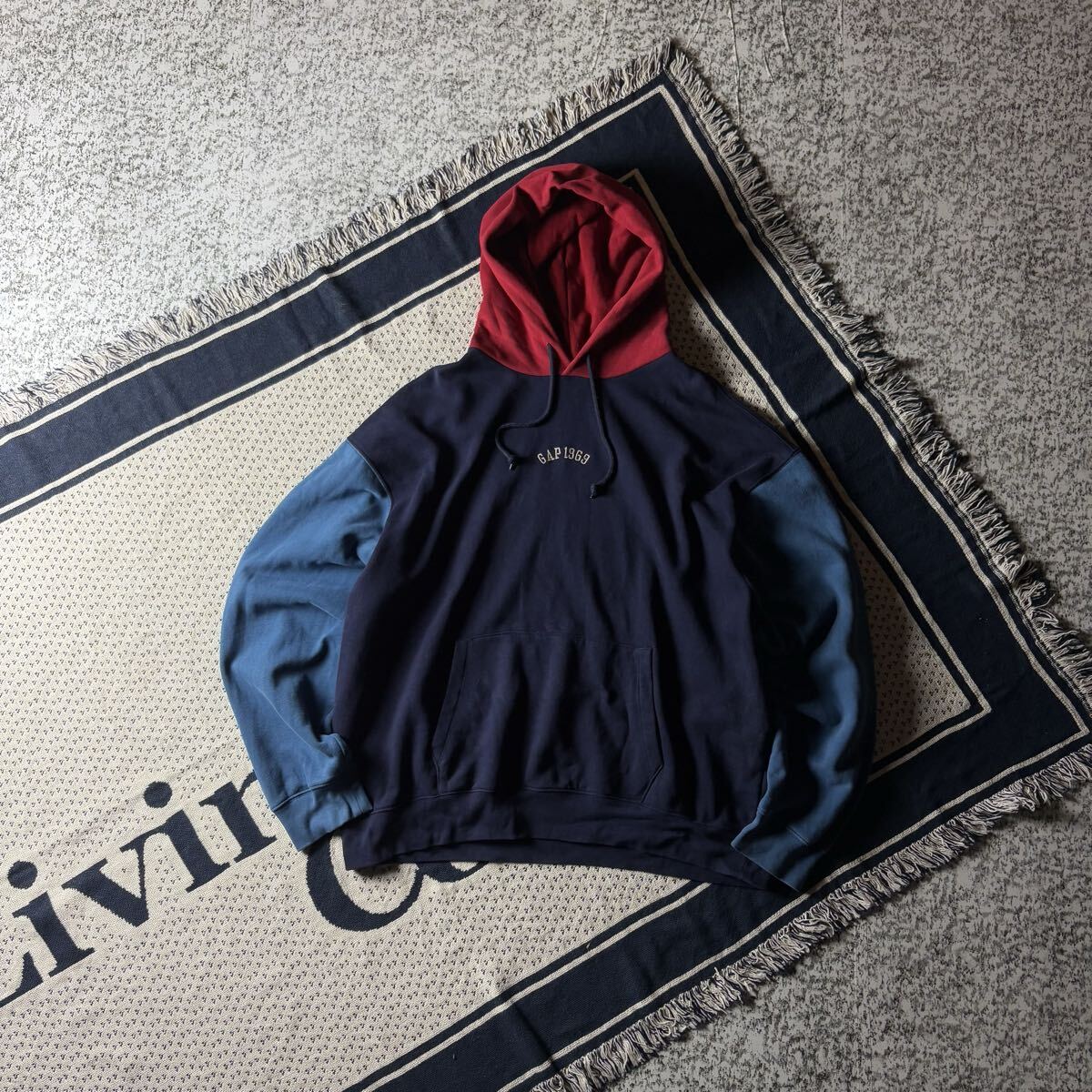 グッドレギュラー GAP トリコ マルチカラー スウェットパーカー フーディー ネイビー レッド  古着 XLサイズ