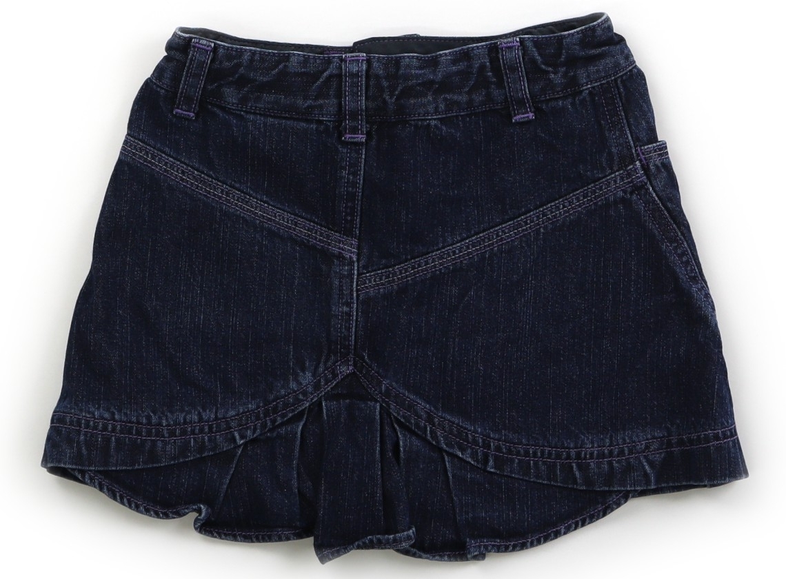 デニム生地。前ファスナー開き。サイズ調整ゴムが付いています。部分的に色あせがあります。やや使用感はありますが、他は型崩れもなく、まだまだお使いいただけます。