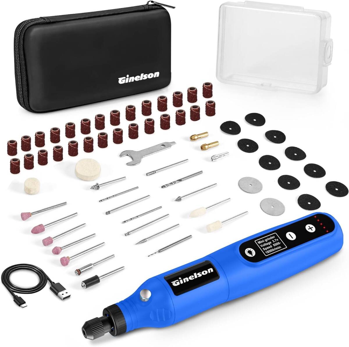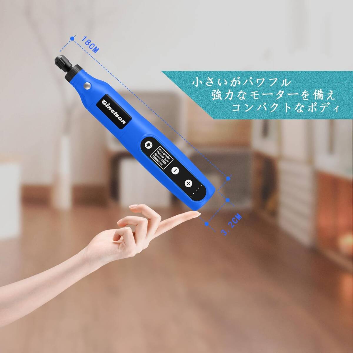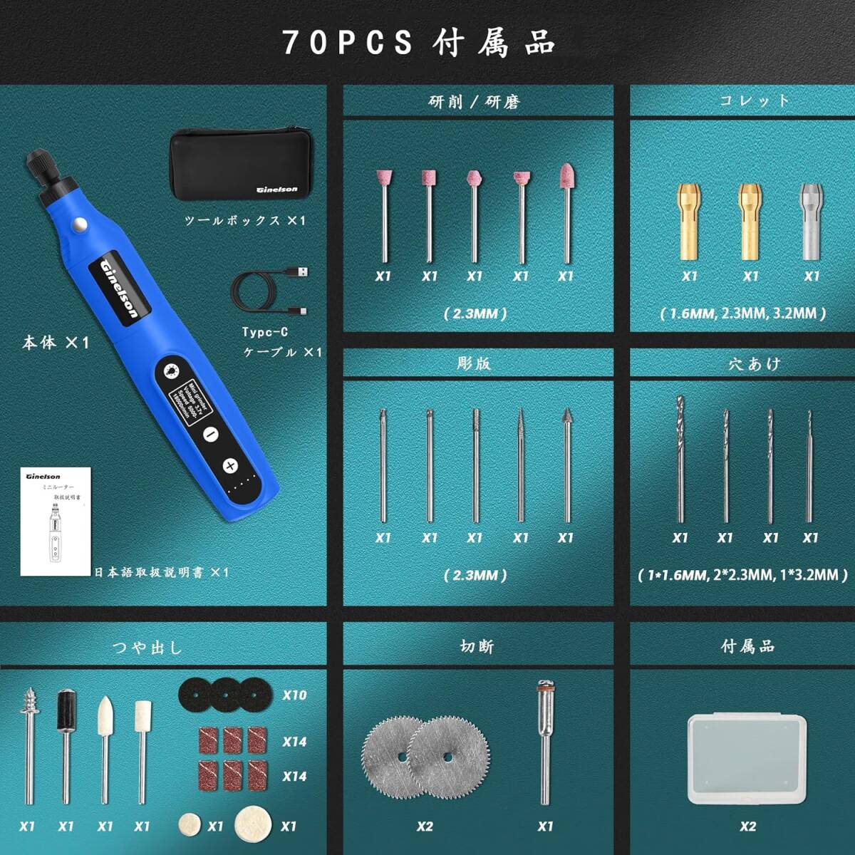 • 【幅広い対応性70PCS付属品】Ginelsonミニルーターのパッケージに70個のビットと2個収納箱があり、交換用のビットが多くあるので、よくビットの購入が不要です。今回は2丸鋸刃、2フェルトホイールとカットオフホイールを追加いたし、彫刻/穴あけ/研磨/切断/切削/つや出し/マニキュア/汚れ落としなどの作業はちゃんとでき、1in8以上はもっと幅広く対応できます。
