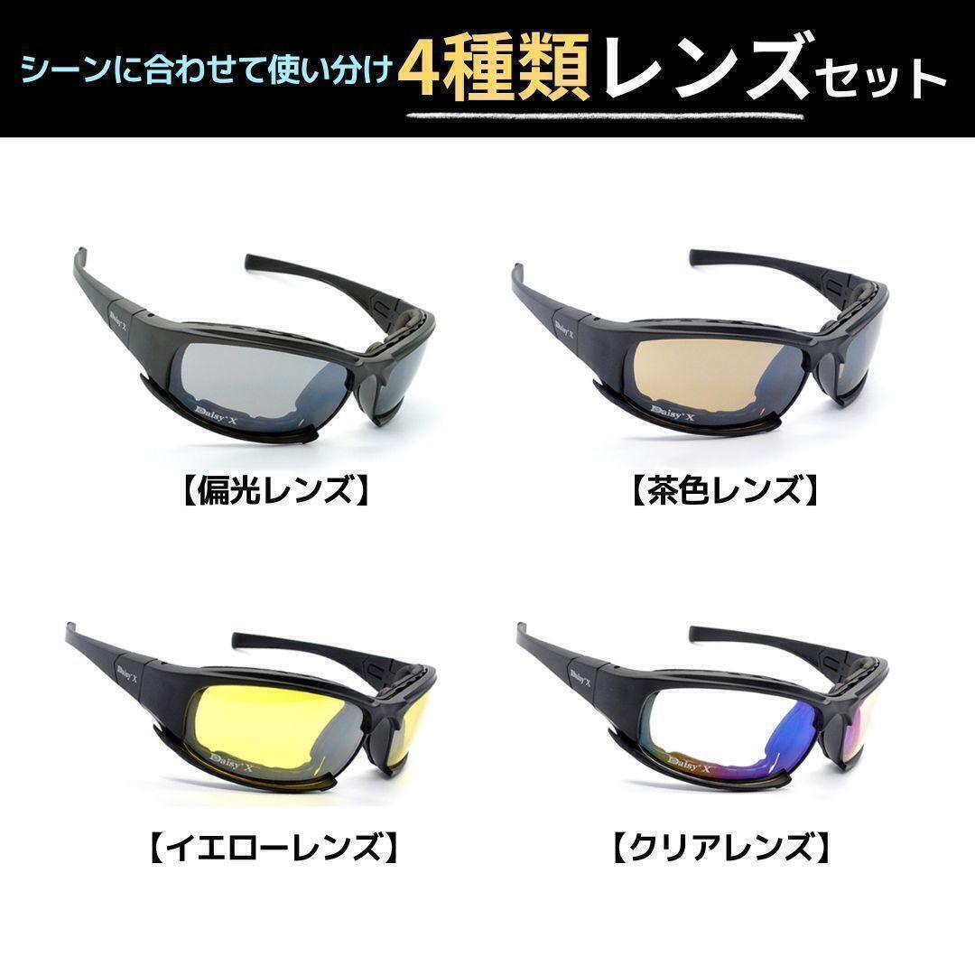 偏光サングラス バイク用ゴーグル サバゲー 偏光 軍用 サングラス 4枚セット (1158)