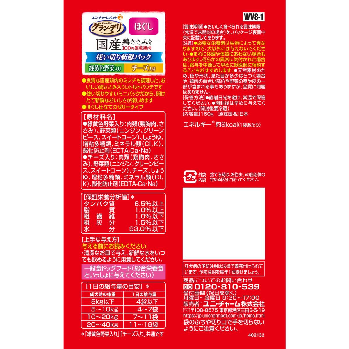 | 商品説明 | 100%国産鶏肉を使用した使い切りウェットフード 説明商品紹介・1回で使い切れるから、毎回開けたての美味しさを楽しめる ・100%国産の良質な鶏肉を調理 ・美味しい鶏ささみ入りレトルトパウチ ・愛犬が大好きなほぐし仕立てのゼリータイプ ・緑黄色野菜入りとチーズ入りがそれぞれ4個ずつ入った嬉しいアソート8個パック原材料・成分【原材料】【緑黄色野菜入り】肉類(鶏胸肉、ささみ)、野菜類(ニンジン、グリーンピース、スイートコーン)、しょうゆ、増粘多糖類、ミネラル類(Cl、K)、酸化防止剤(EDTA-Ca・Na)【チーズ入り】肉類(鶏胸肉、ささみ)、野菜類(ニンジン、グリーンピース、スイートコーン)、チーズ、しょうゆ、増粘多糖類、ミネラル類(Cl、K)、酸化防止剤(EDTA-Ca・Na)【保証成分】タンパク質6.5%以上、脂質1.0%以上、粗繊維1.0%以下、粗灰分1.5%以下、水分93.0%以下【エネルギー】約9kcal/100g使用方法ー ■ご注文からお届けまで ※トラブル防止のため入札、落札前に必ずご一読をお願い致します。 落札後のお客様都合でのキャンセルはお受けできませんので、予めご了承ください。 1.ご注文 : ご注文は24時間受け付けております。 2.注文確認 : ご注文時、オーダーフォーム等必要事項を入力お願い致します。 3.入金確認 : 前払い決済をご選択の場合、ご入金確認後、配送手配を致します。 4.出荷 : 配送準備が整い次第、出荷致します。配送業者、追跡番号等の詳細をご連絡致します。 5.到着 : 出荷後、1-3日で商品が到着します。 ※商品の到着までは、決済確認後、3-7営業日でお届けとなります。 ※離島、北海道、九州、沖縄は遅れる場合がございます。ご了承下さい。 ※代引の場合、手数料として660円頂きます。 商品管理、在庫管理は行っておりますが、商品の不具合等でお届け出来ない場合は、 銀行口座へ振込返金となりますので、予めご了承いただきますようお願い申し上げます。 手続き削減の為、こちらからは発送完了までご連絡を行なっておりません。 原則、電話対応はしておりませんので、ご質問等はお問い合わせ、またはメールにてお願い致します。 土日祝祭日はご質問や落札されても商品発送等の、対応ができない日もございます。 予めご了承ください。 |