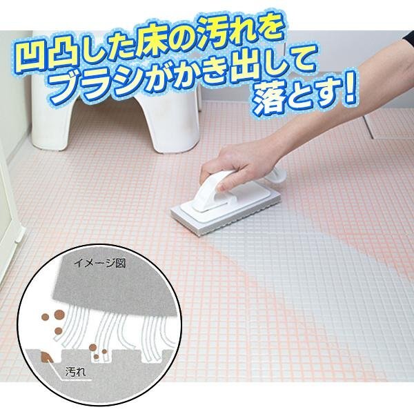 凹凸した床の汚れをツンツンブラシがかき出して落とします。