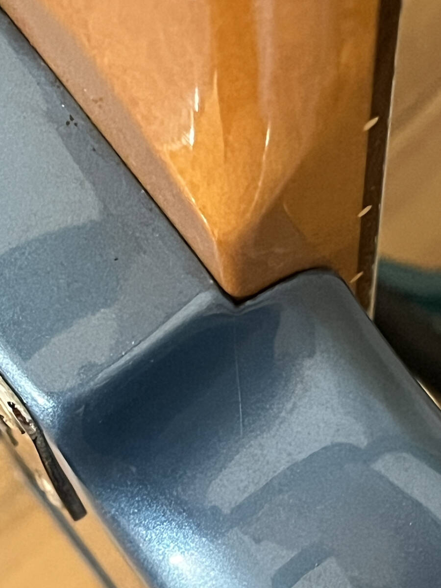 メキシコ製のストラトではよくある、ネック付け根に塗装のヒビあります。
