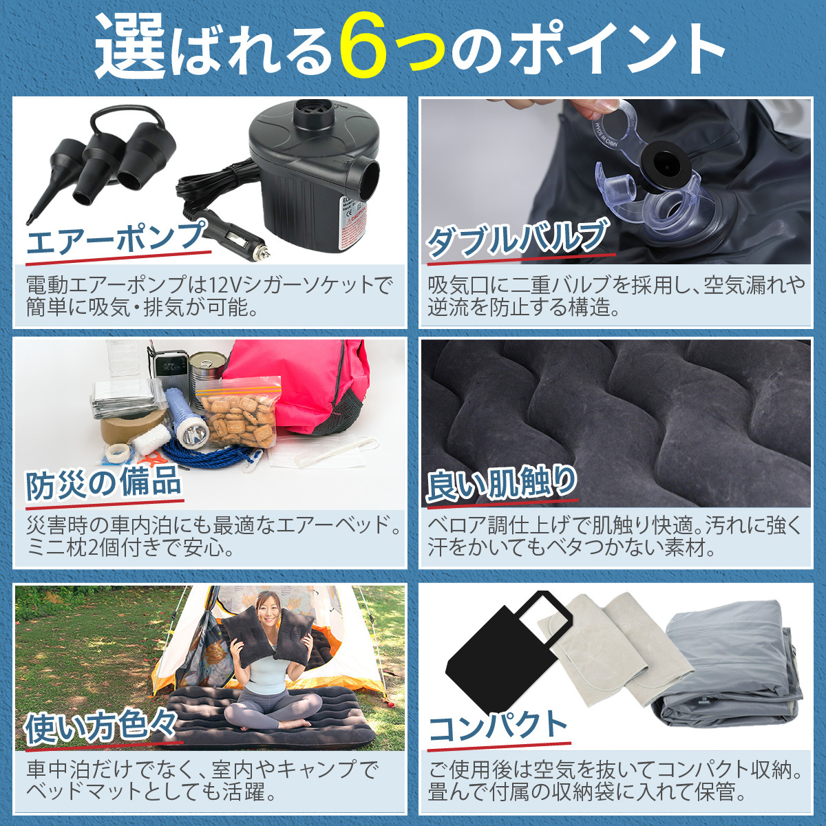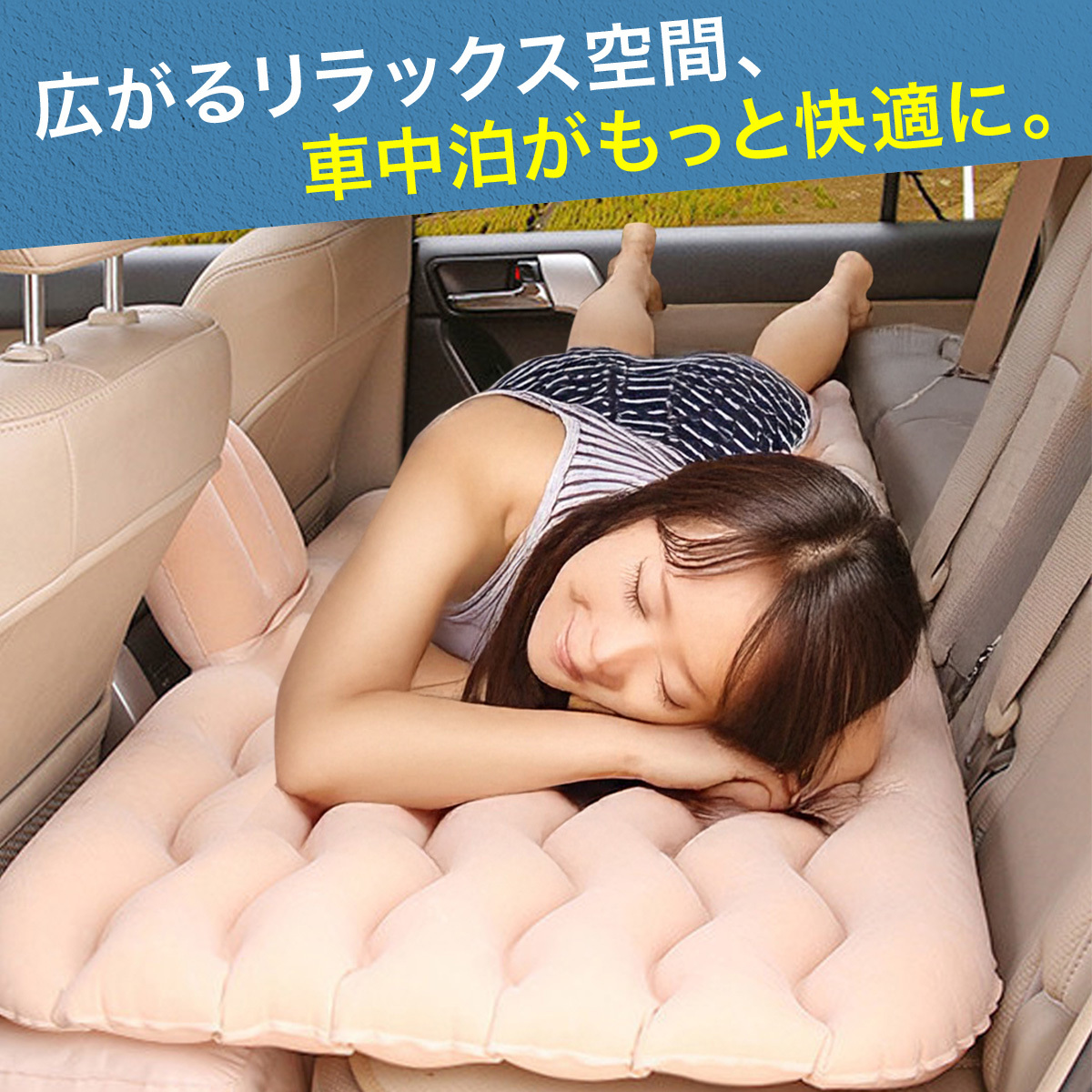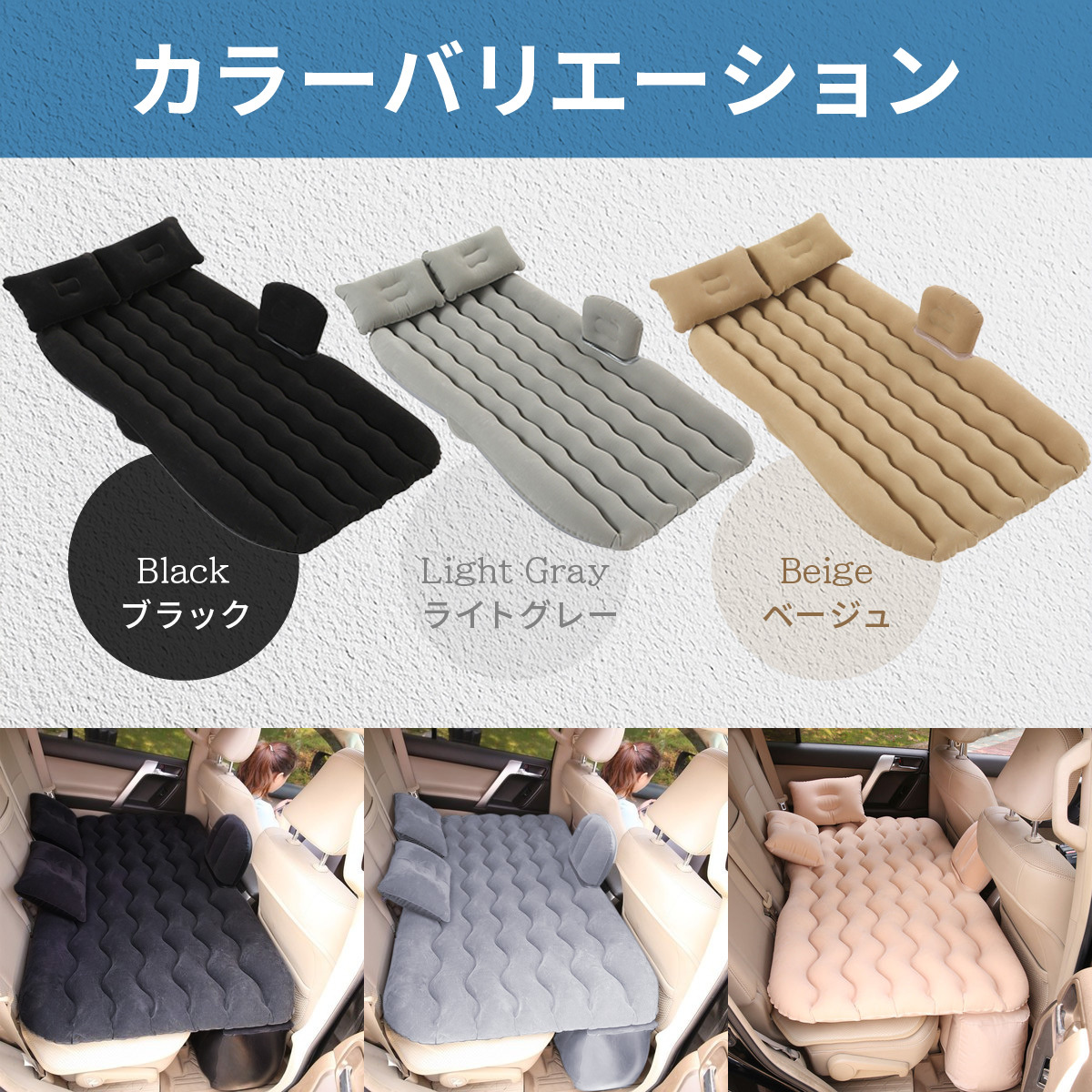 商品名:エアマット エアーマット 自動車 後部座席用 アウトドア 仮眠 休憩 ドライブ エアクッション エア枕付き 電動ポンプ付き
