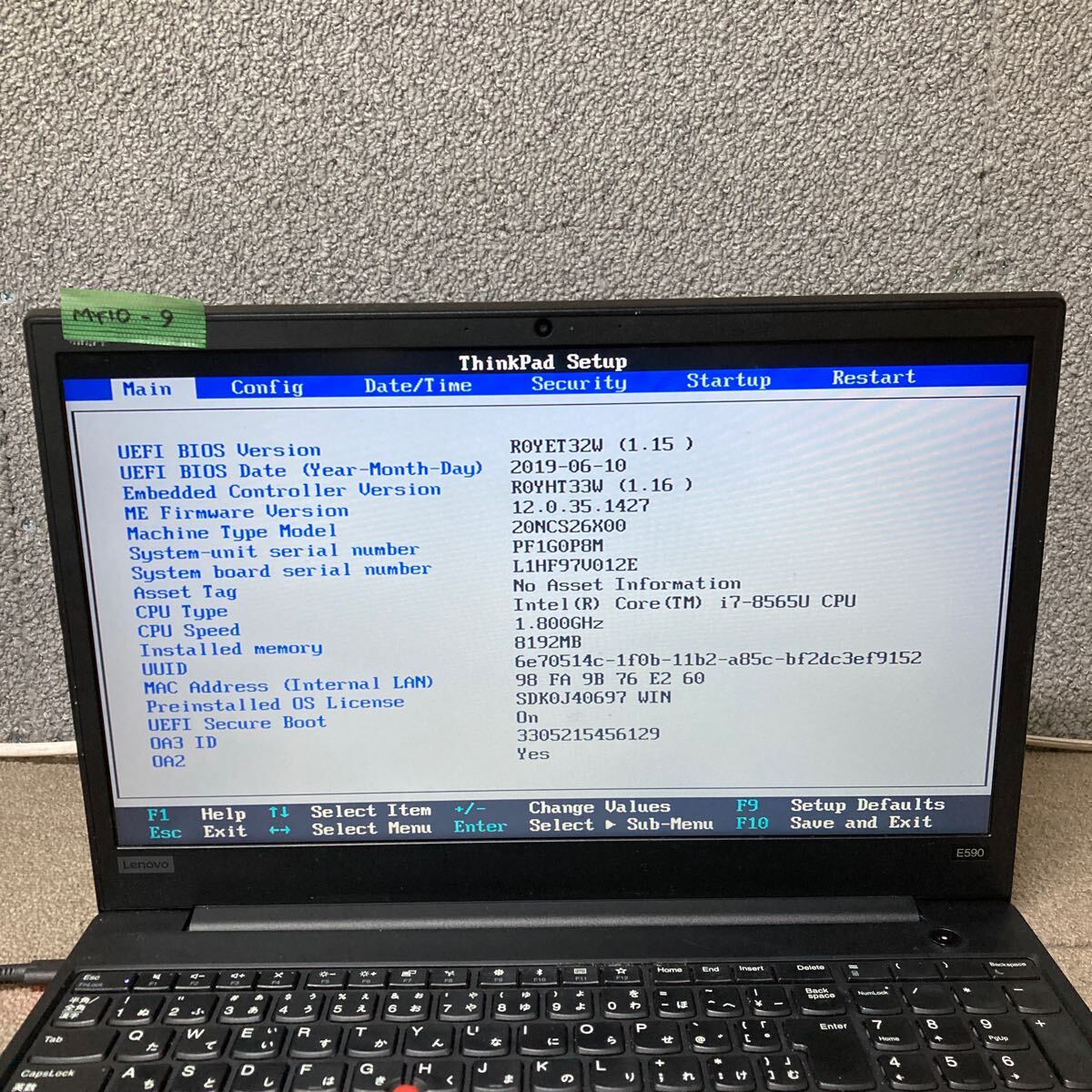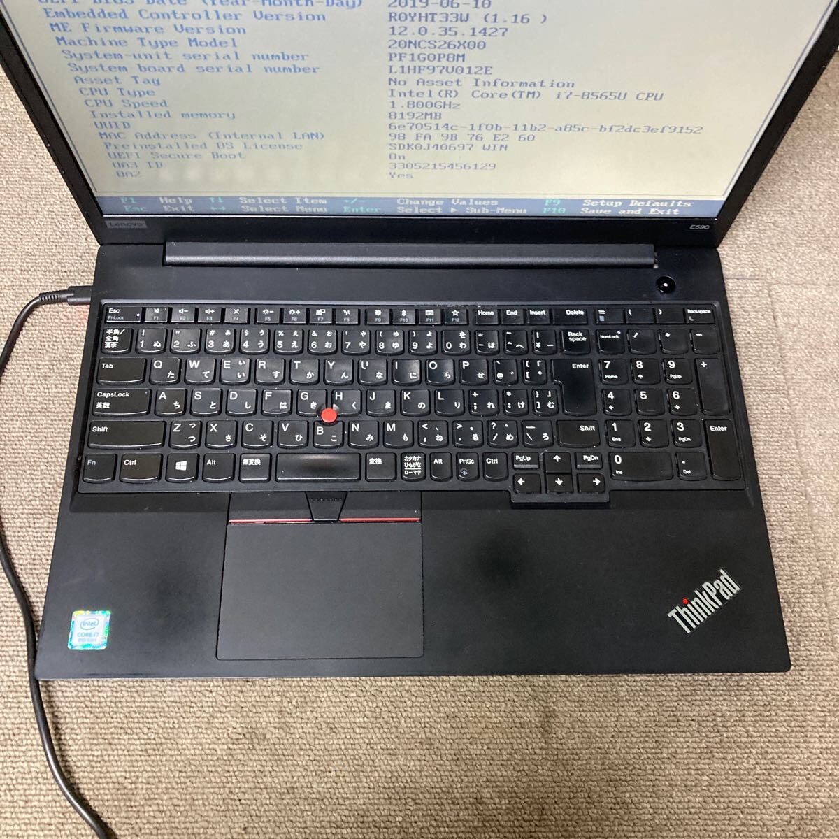 BIOS立ち上がり、設定変更のみ確認しております。