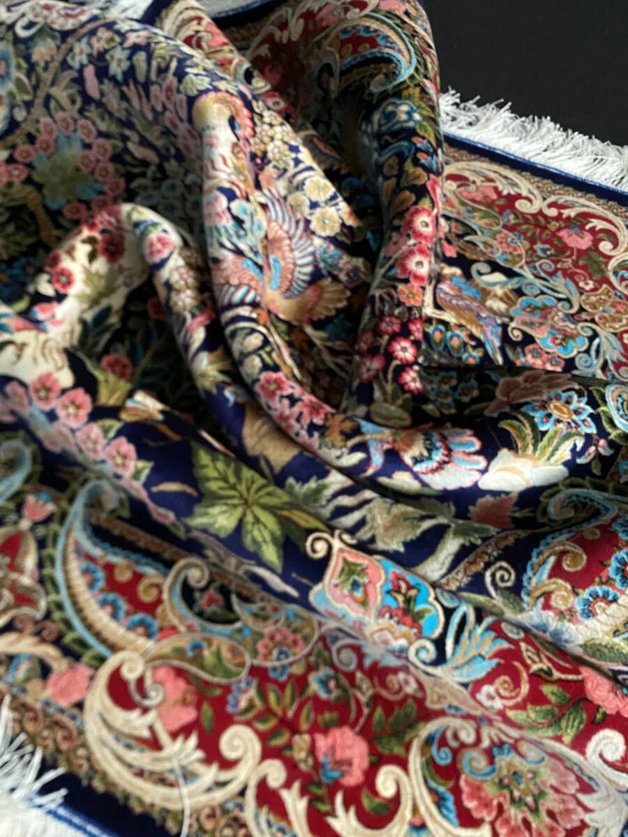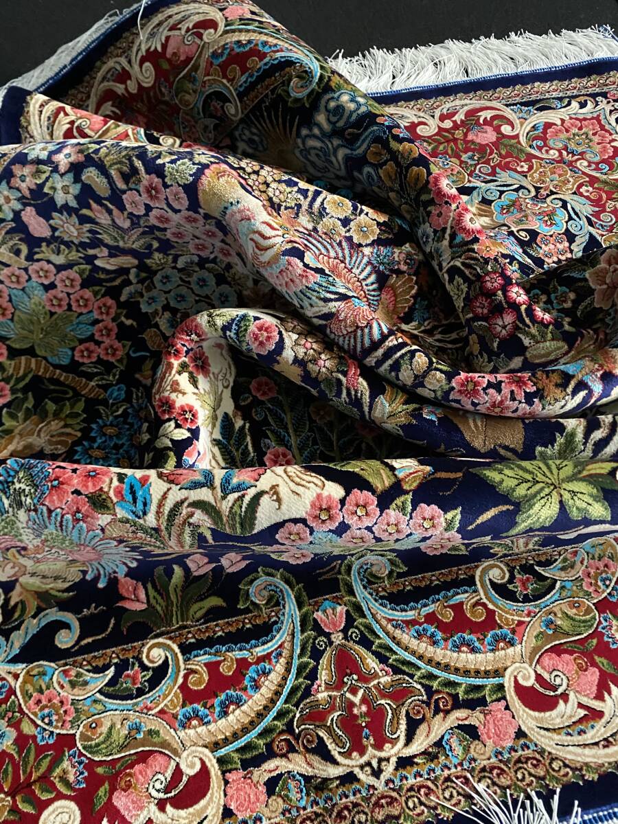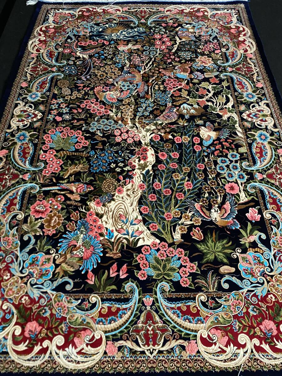 クム絨毯の歴史は1930年頃からと浅く、最初はウール絨毯を、後にシルク絨毯を織るようになりました。絹の産地としても有名なクムで、現在作られるほとんどの絨毯は100%シルク製です。
