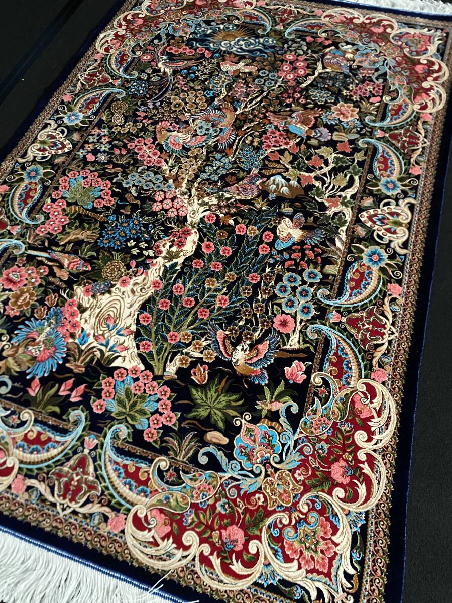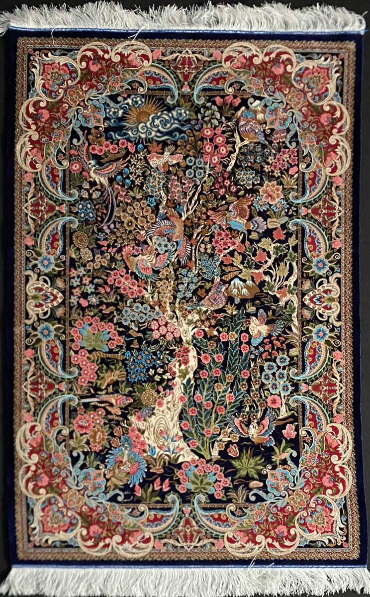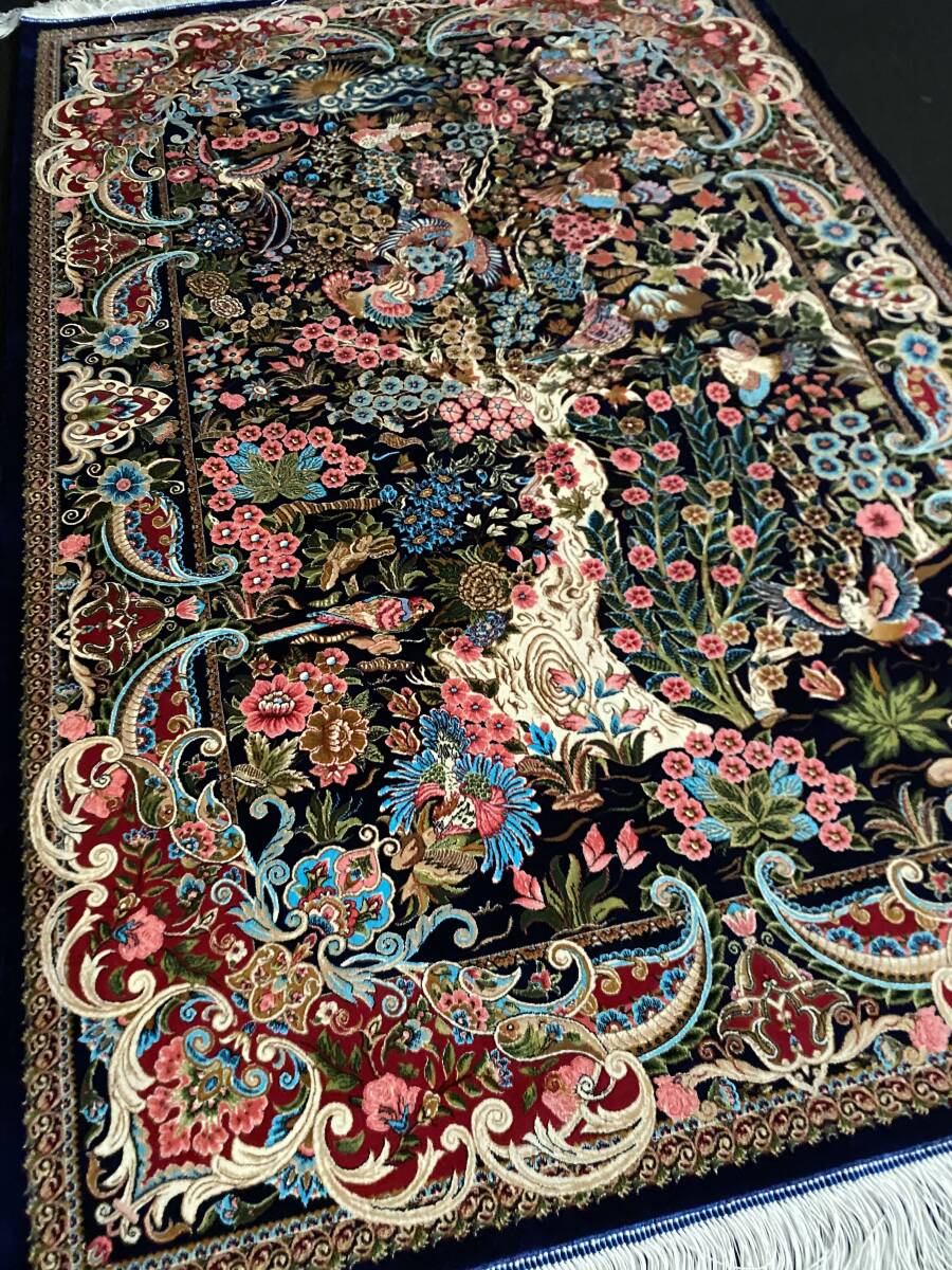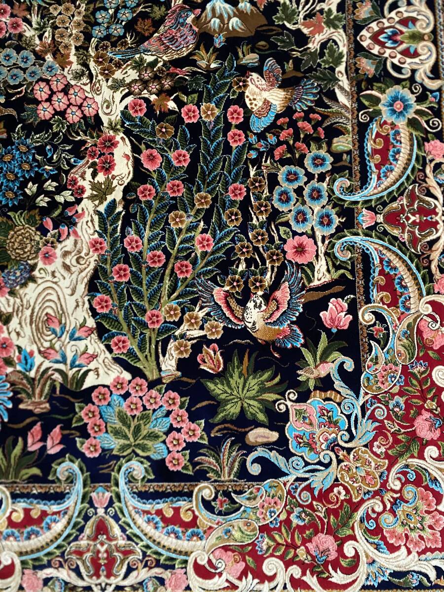 クム絨毯の歴史は1930年頃からと浅く、最初はウール絨毯を、後にシルク絨毯を織るようになりました。絹の産地としても有名なクムで、現在作られるほとんどの絨毯は100%シルク製です。