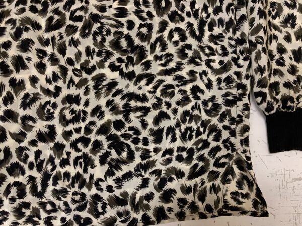 オールド レトロ ブティック 古着 総柄 大阪感強め 襟・袖リブ 長袖シャツ カットソー トップス レディース 薄手 ベージュ です。