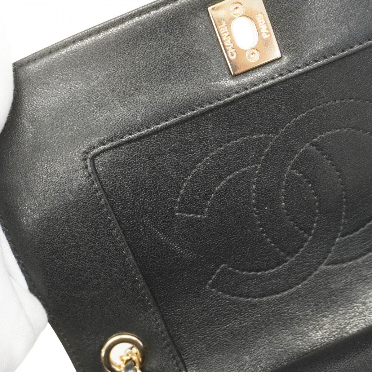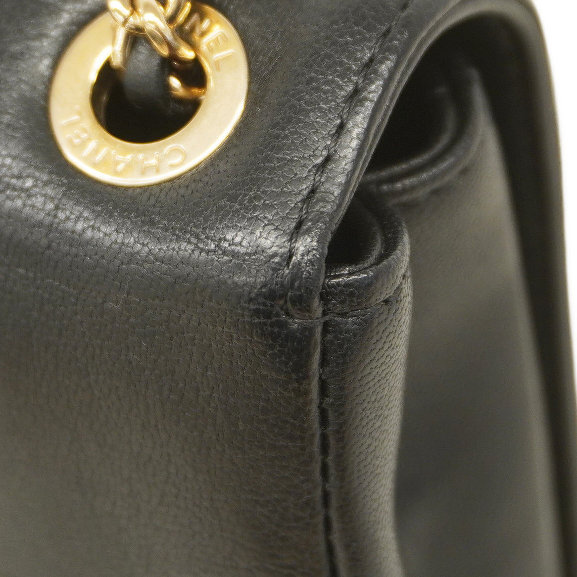 ★SALE【5mc3542-h】シャネル ショルダーバッグ Vステッチ Wチェーン ラムスキン ブラック シャンパンゴールド金具【中古】レディース