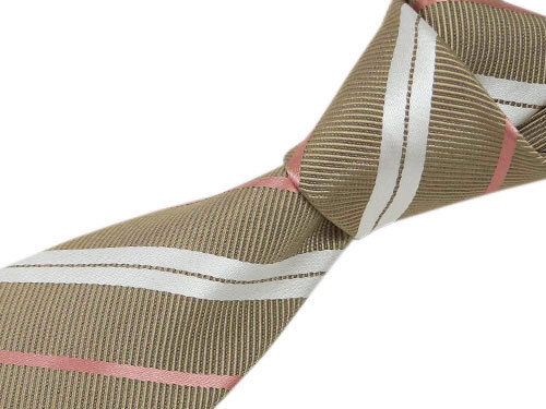 プラダ ブランド ネクタイ UCR77 PRADA メンズ 高級 シルク 100% ストライプ ROSA ダークベージュ アウトレット わけあり