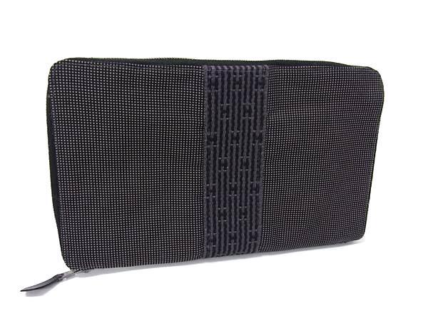 1円 HERMES エルメス エールライン パースGM キャンバス シルバー金具 ラウンドファスナー 長財布 ウォレット 札入れ グレー系 GB2314
