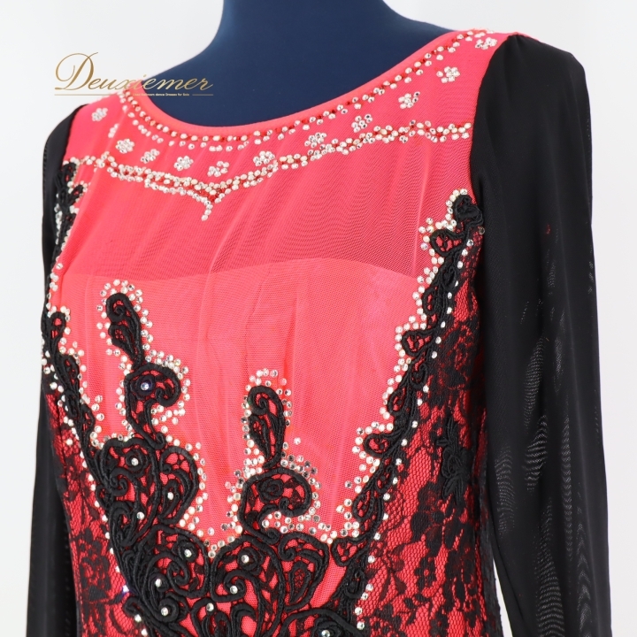 | 【商品名】社交ダンス 衣装 ワンピース ドレス 【サイズ】11号表記 平置き実測:総丈約120cm(裾~肩部まで)、身幅約43cm、ウエスト約38cm~ ※実測の為、多少の誤差はご了承ください 【仕様】 ・背面ファスナー仕様 ・レオタード無し ・伸縮性有り ・肩パッド無し ・胸パッド無し 【品質表示】 ポリエステル100% ------------------------------------ 【ポイント】 ▽SEKINE セキネ 日本製 ▽蛍光ピンクがかわいい ▽レースが綺麗なデザイン ------------------------------------ 【撮影時使用トルソー】 種 類:女性用トルソー9号 (一般的に使用されるサイズです) サイズ:肩先~床約135cm(身長約160cm)、肩幅約37cm、バスト約88cm、ウエスト約66cm、ヒップ約89cm |
