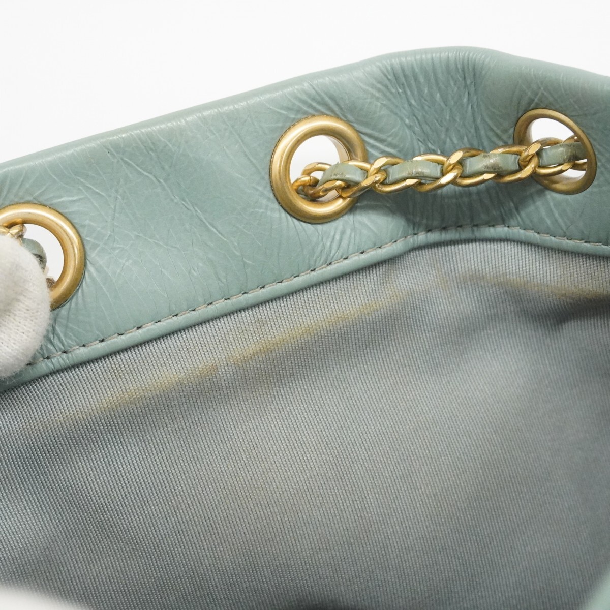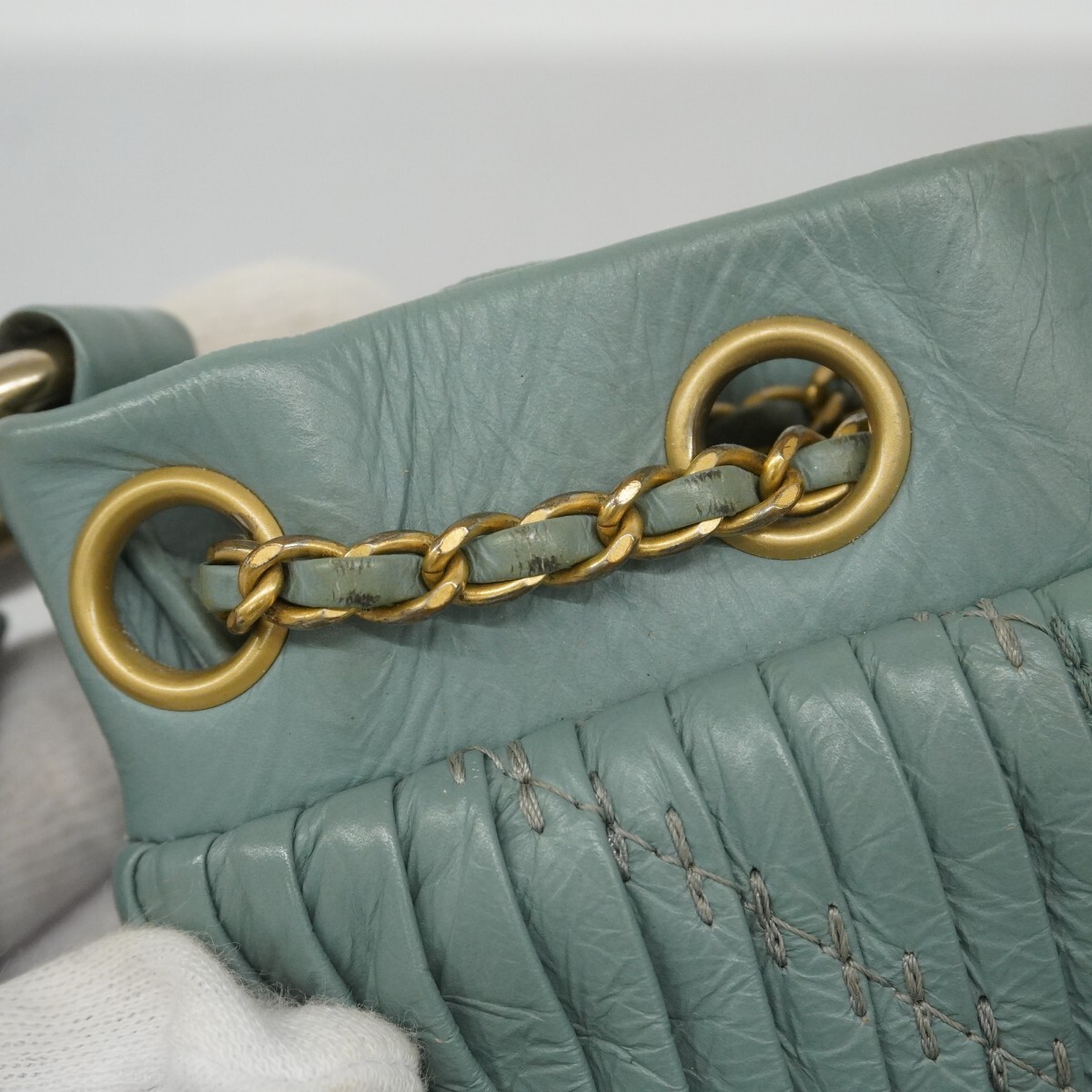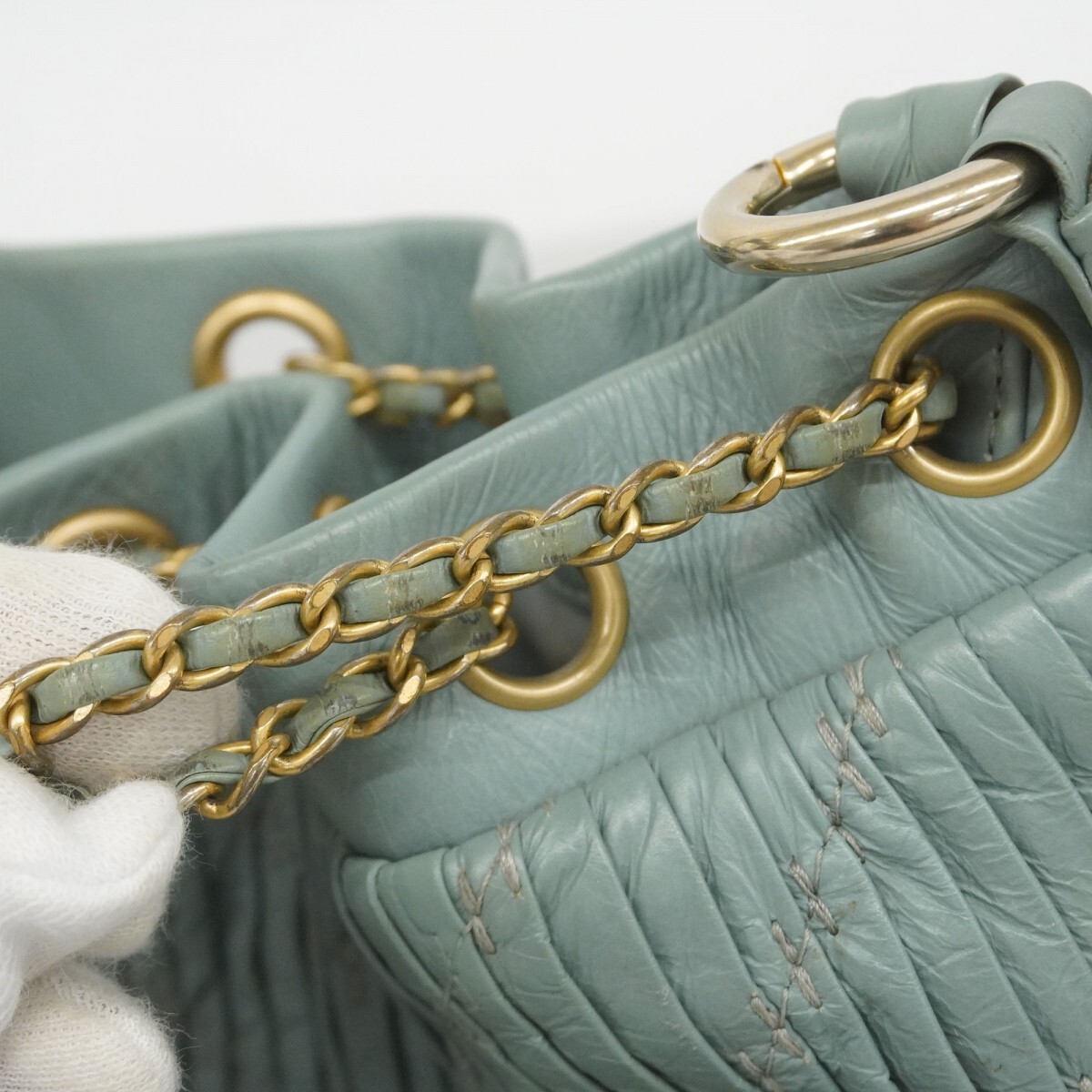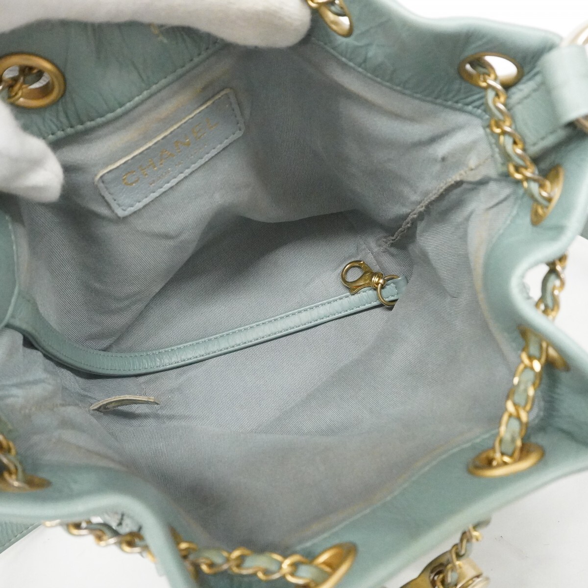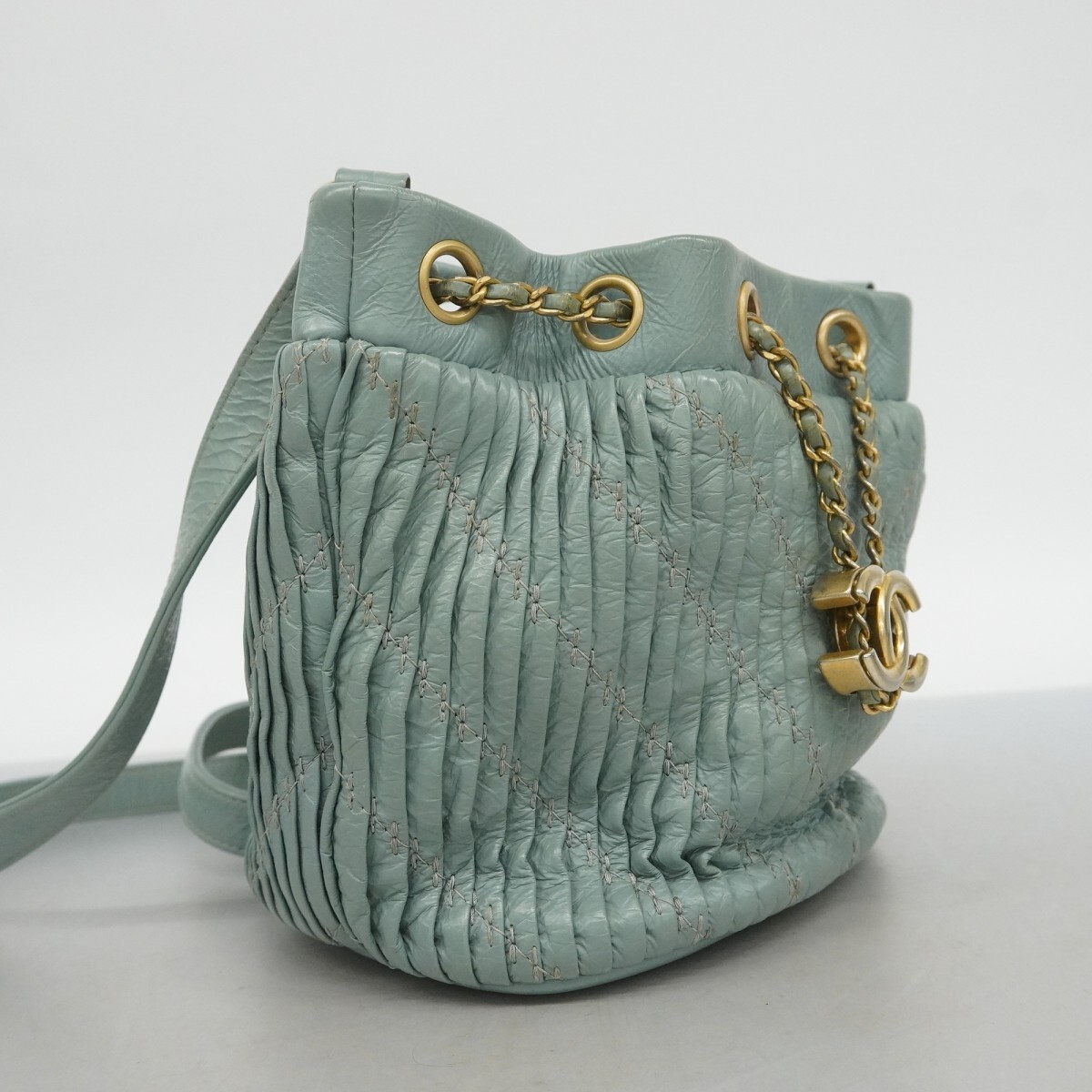 【5md5233-h】シャネル ショルダーバッグ Vステッチ レザー ブルー シャンパンゴールド金具【中古】レディース
