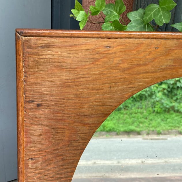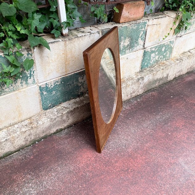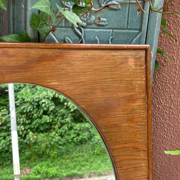 艶やかなオールドパインのフレームに楕円形の鏡を施した鏡が入荷しました。イギリス製、推定1940年代。後ろのチェーンを固定する部分は新しい物と交換されていました。幅45㎝ほどのサイズ感ですので、どんな場所にも設置できそうですね。古いオリジナルの鏡ですので、アンティークらしい黒く見える部分が見られます。長い時間を経た証として、お楽しみいただければ幸いです。机の前に立てかけたり、洗面台や玄関鏡としてもいいですね。ナチュラルな空間がお好きな方におすすめ。福岡市南区の店舗にてお渡しもできますのでお気軽にどうぞ!