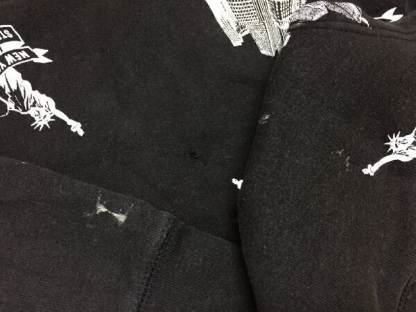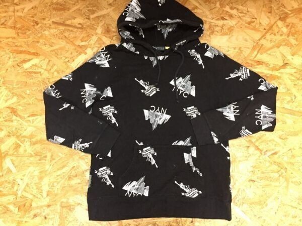 FOR TOMORROW 綿100% NYC ニューヨーク お土産 スーベニア 総柄プリント 長袖スウェットシャツ パーカー カットソー メンズ 綿100% LL 黒