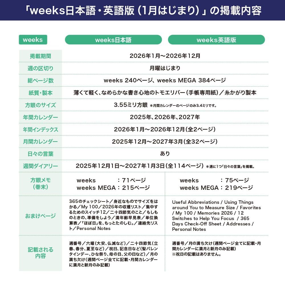 ほぼ日手帳 2026 weeks 日本語 ホワイトライン/ブラック