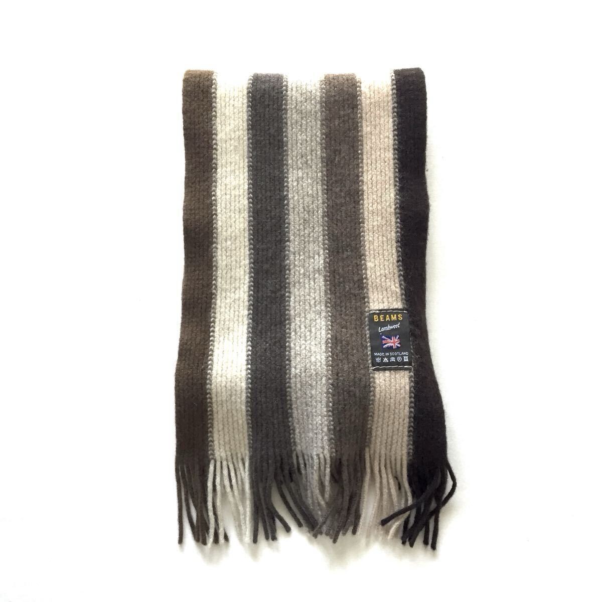 状態良 BEAMS Lambswool Stripe Muffler Scarf ビームス ラムウール ストライプ柄 マフラー 仔羊 羊毛 スコットランド製 MADE IN SCOTLAND