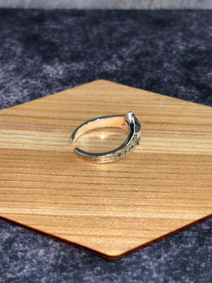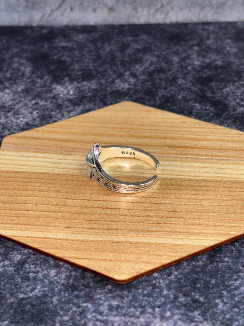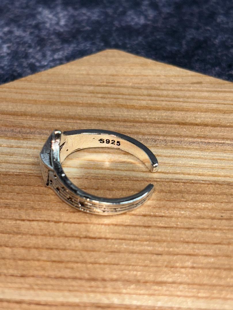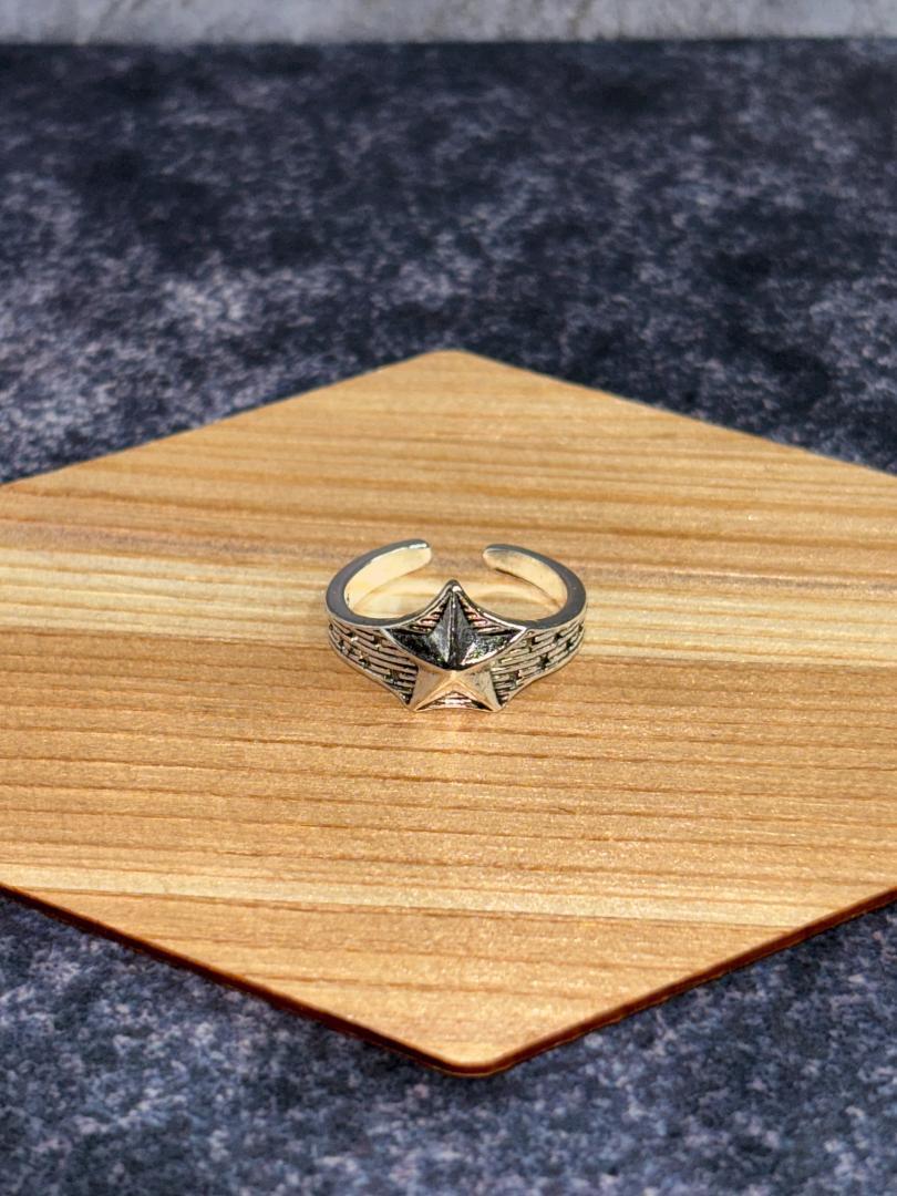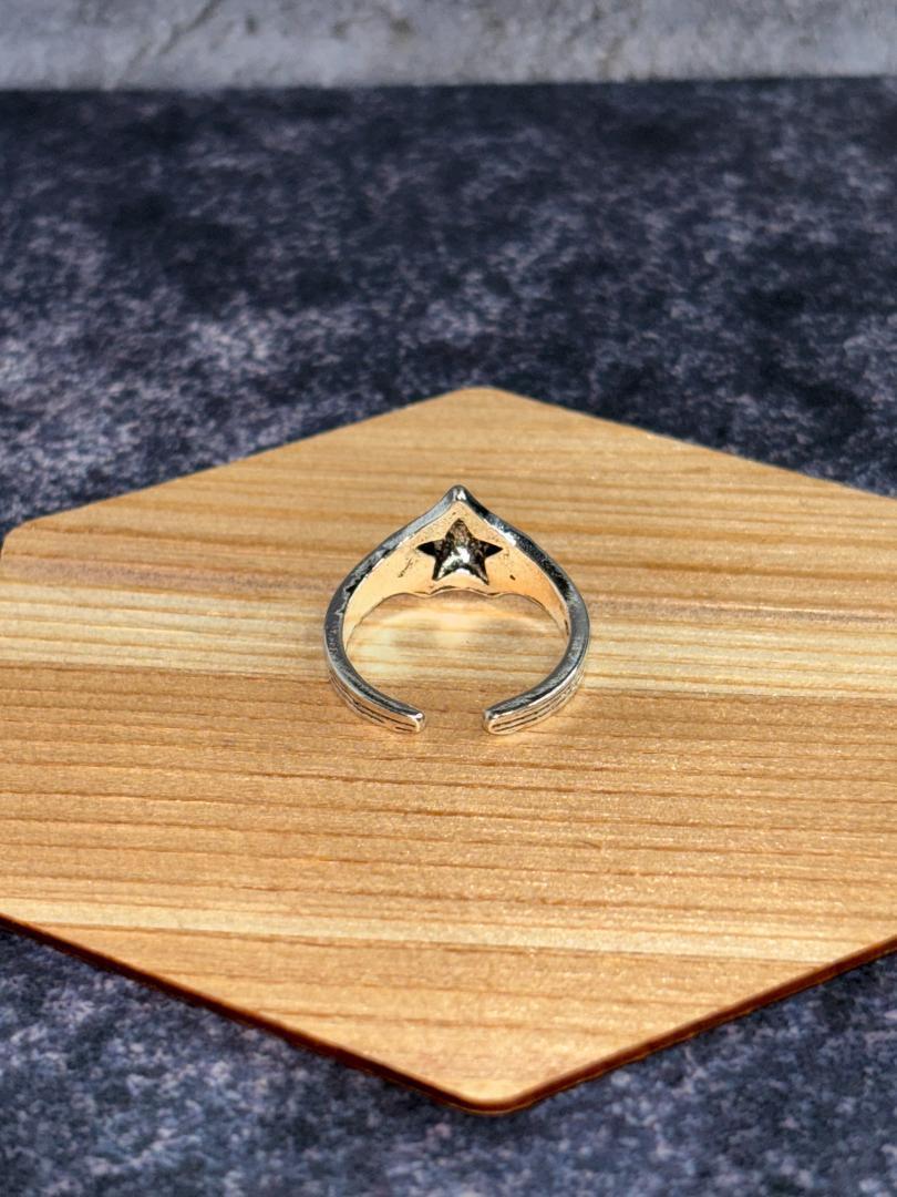 星の稜線を強調した造形と、サイドに走る細かな彫り込みが光を拾い、存在感とヴィンテージ感を両立するスターリングです。