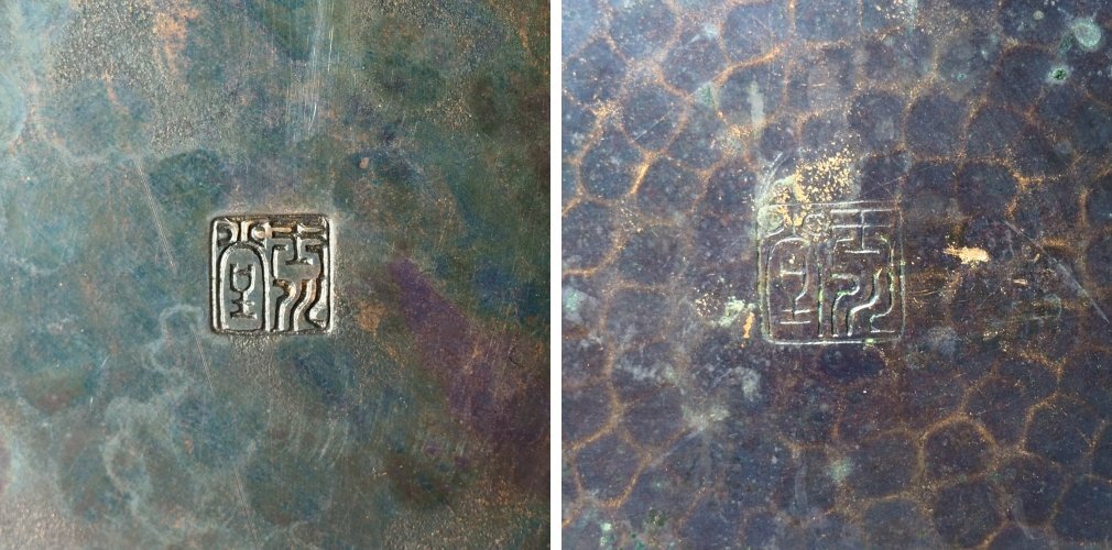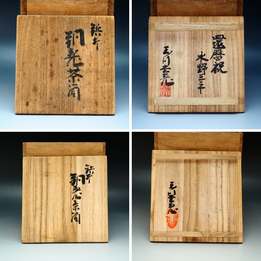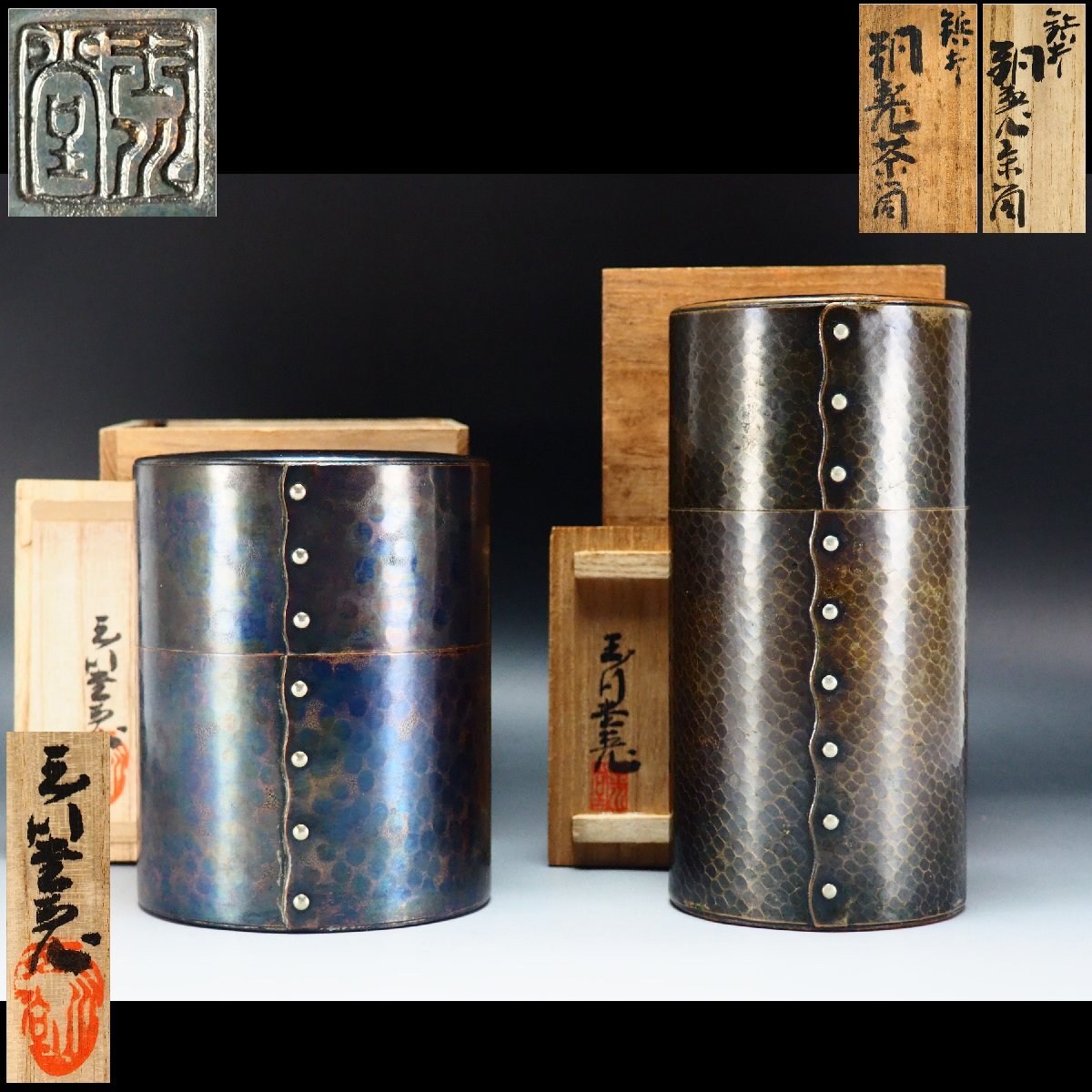 | 《サイズ》 大きさは 幅 9.2~11.2cm ・ 高さ 13.8~18.3cm ・ 重さ合計 1048g 【※計測サイズは最大径で計測しております(例;茶釜であれば、幅は鐶付の先から鐶付の先まで、高さは底面から摘みの先までとなります】 | |||