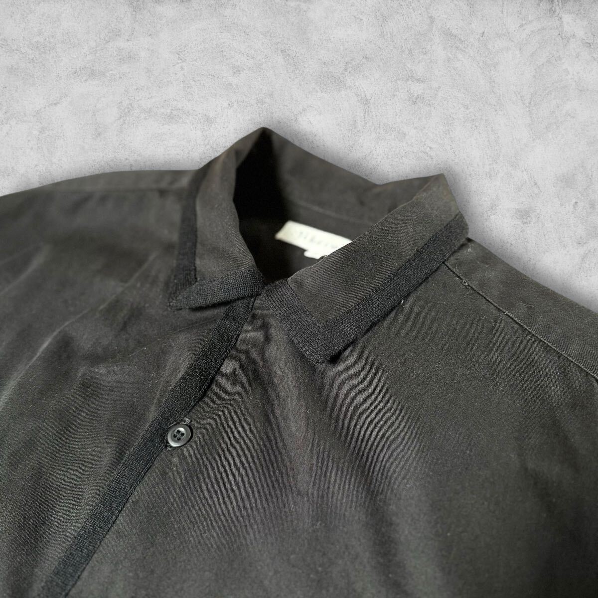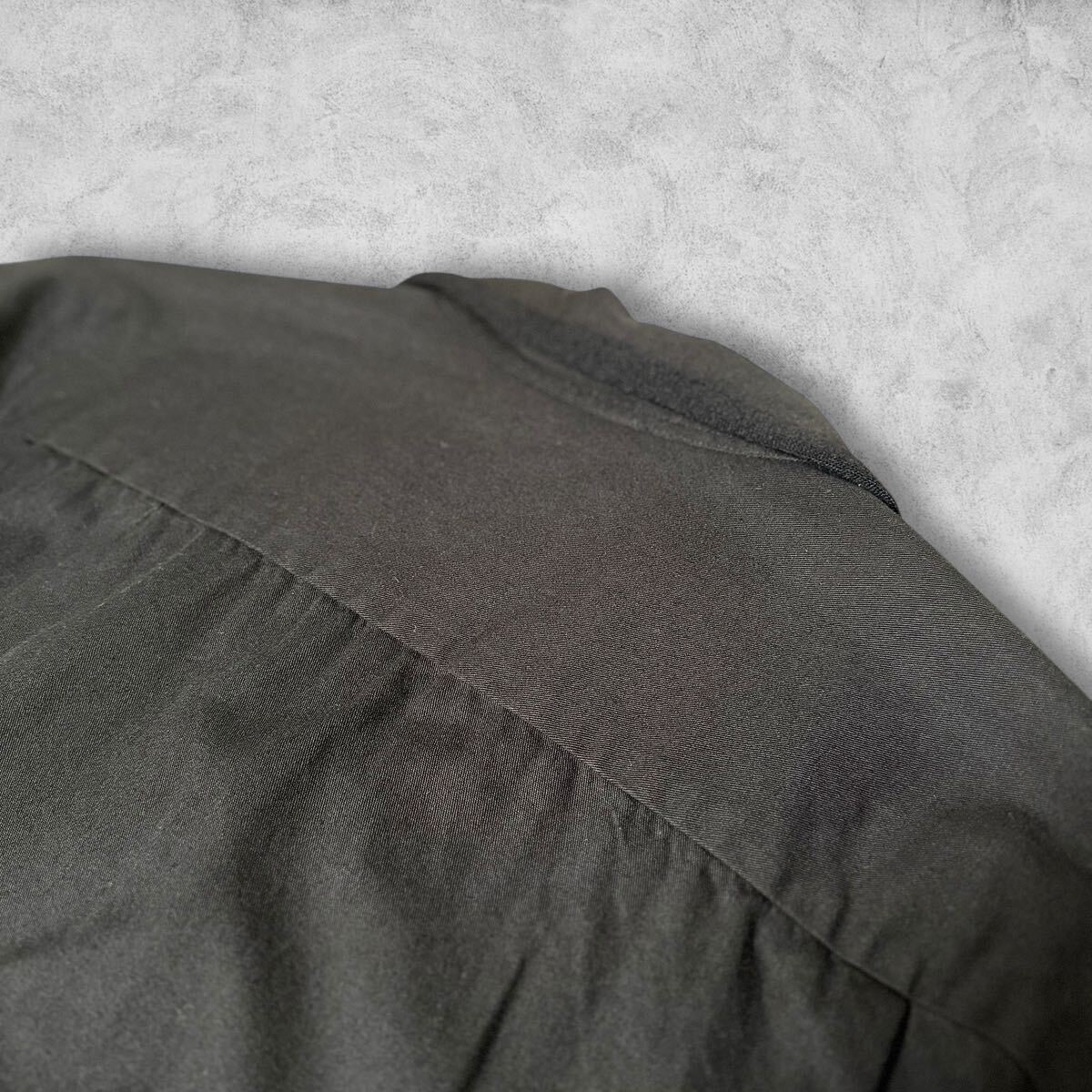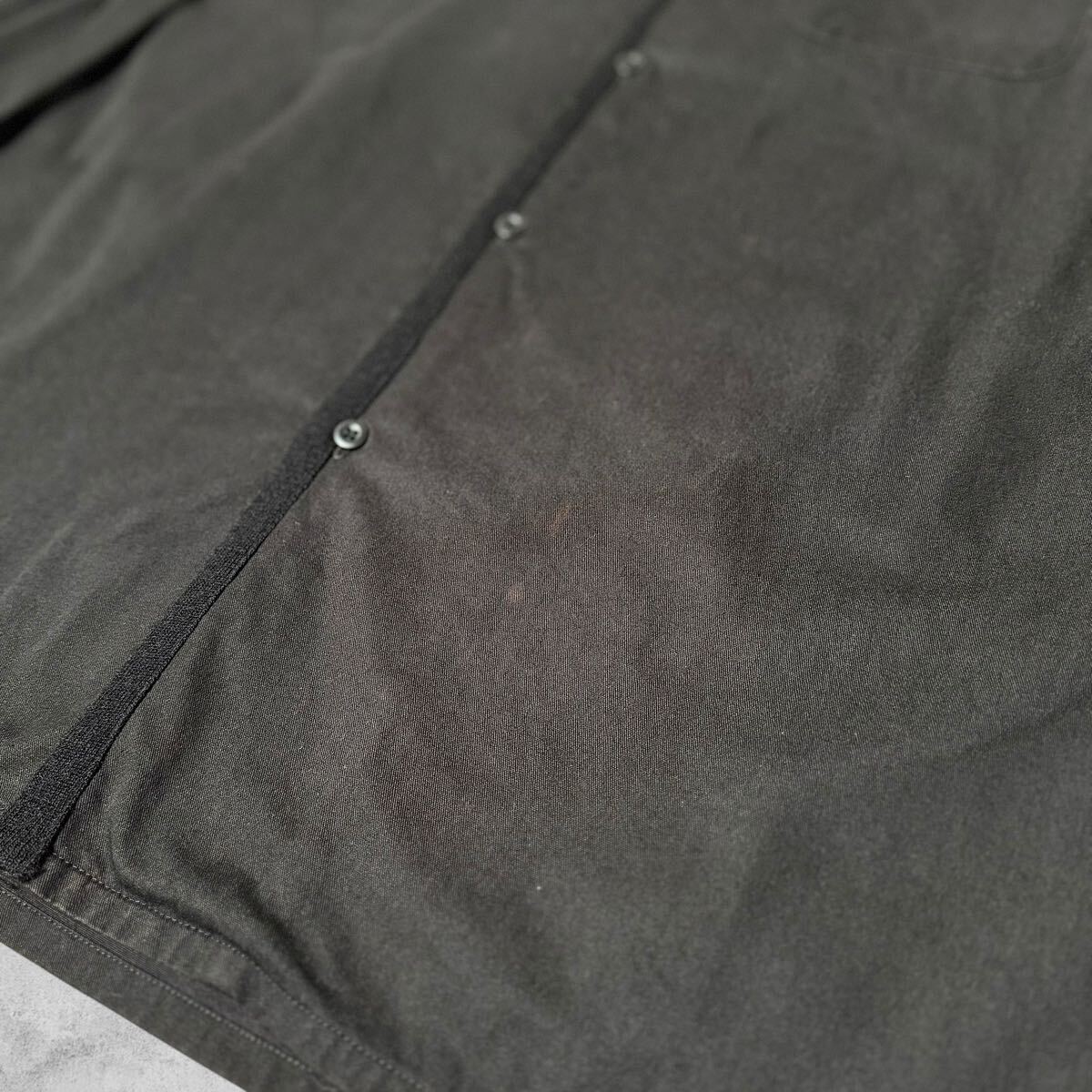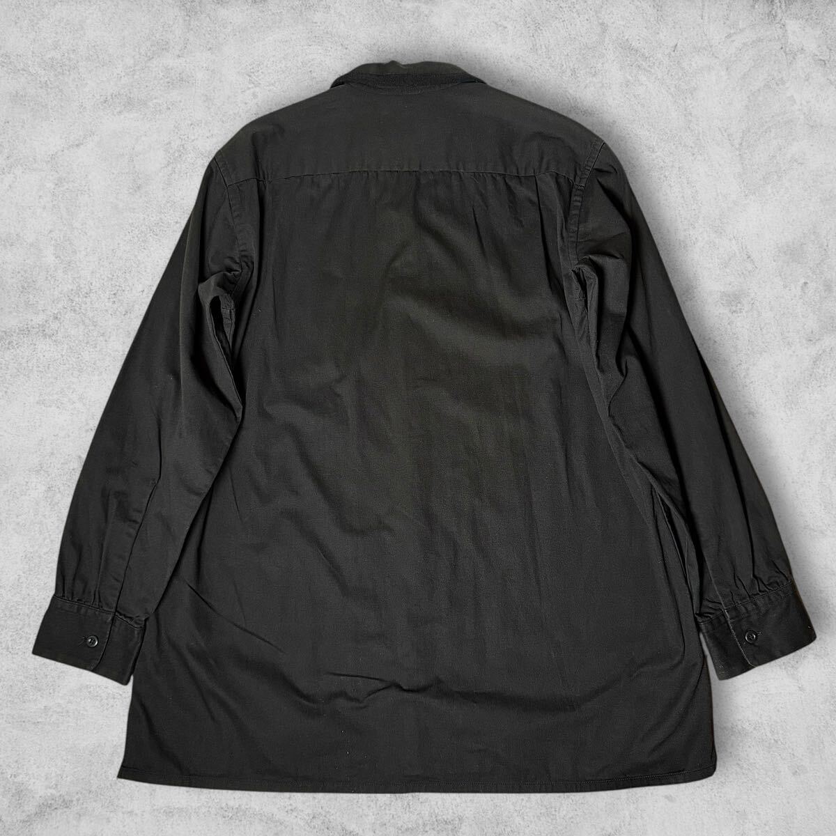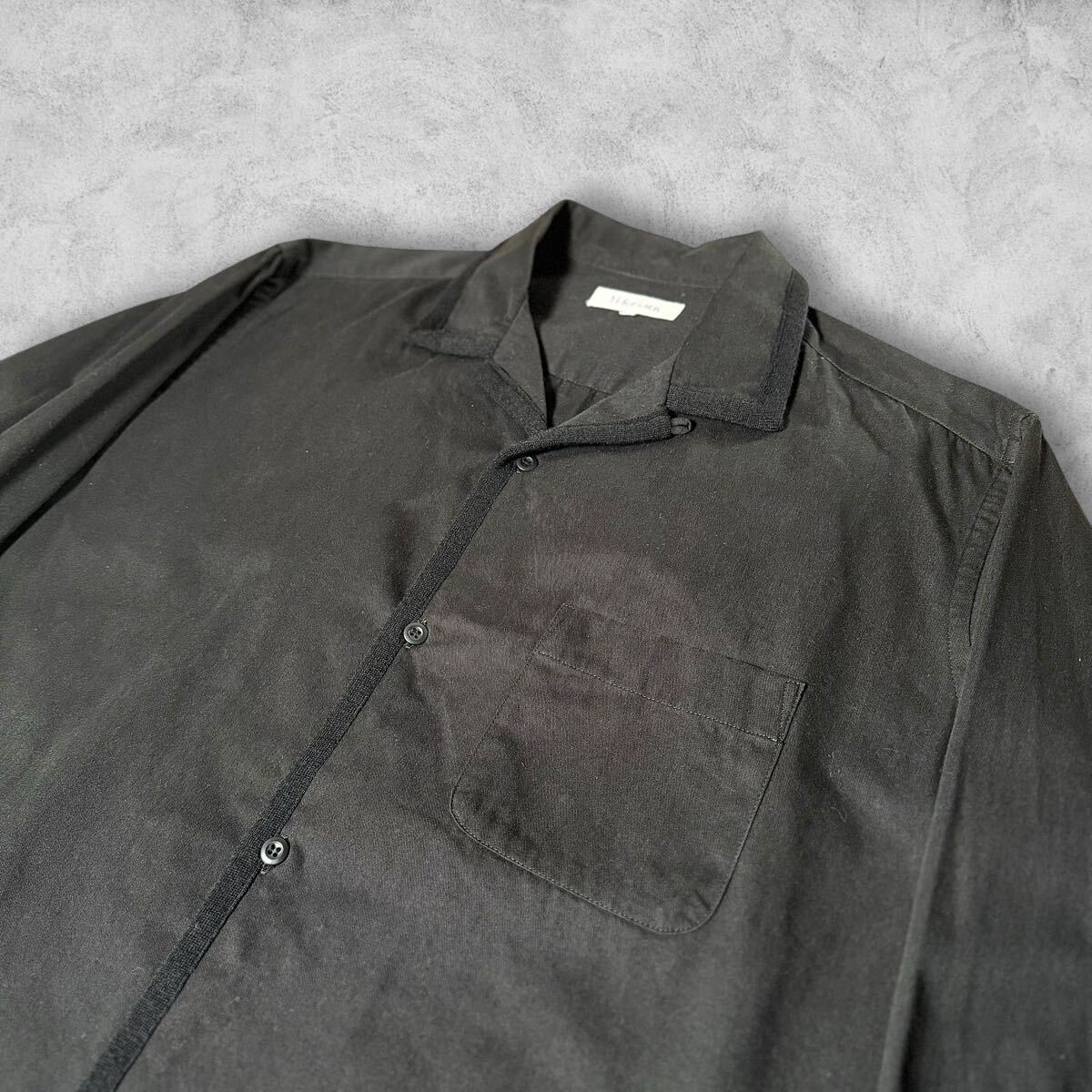 襟と合わせ部分の端がウールネルに切り替えられた長袖シャツ