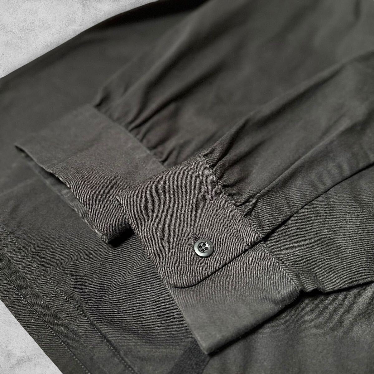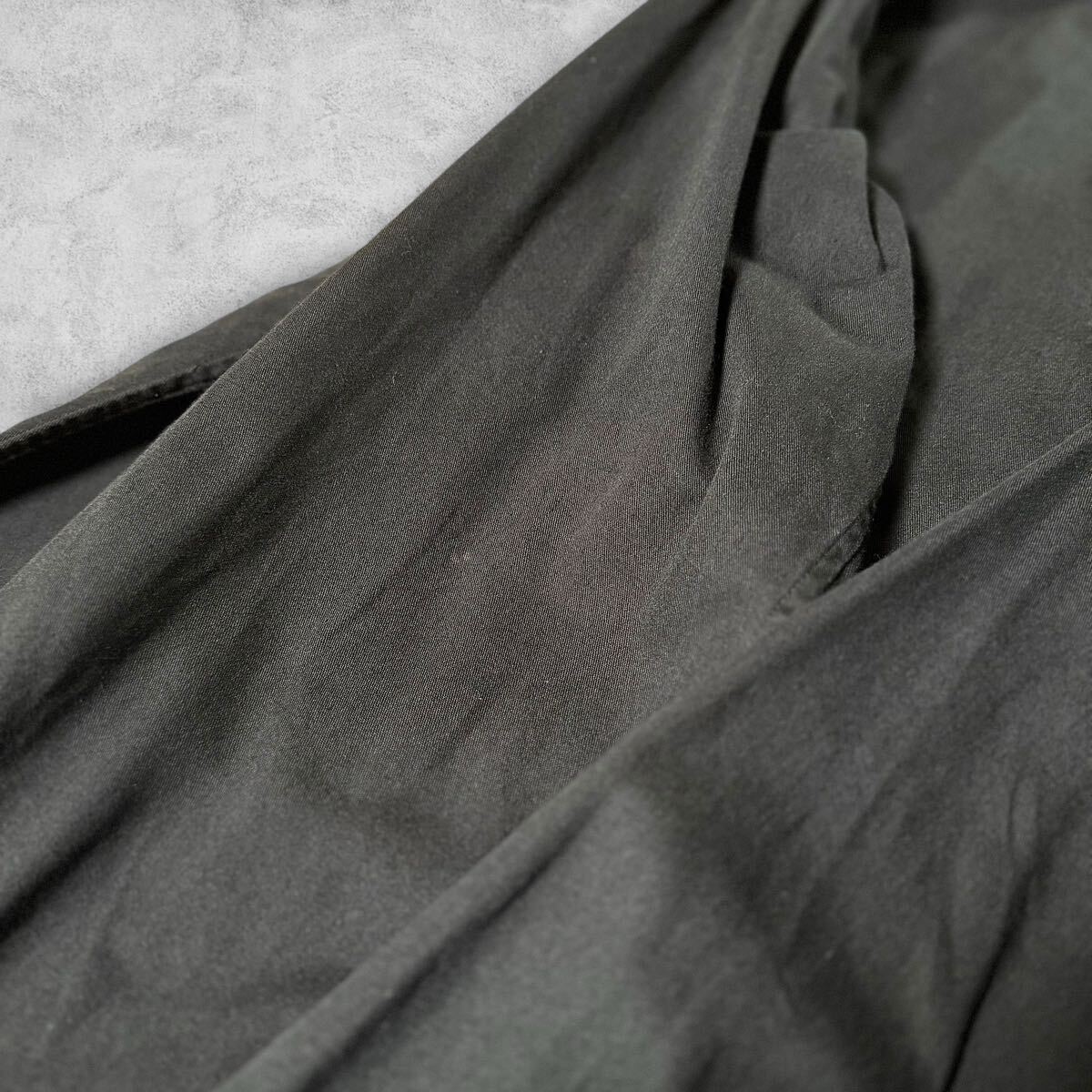 やや厚手の丈夫なコットンギャバジン地、綺麗な黒の色味で使いやすいです。