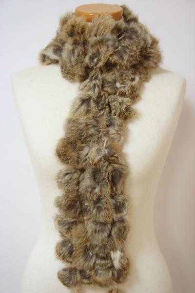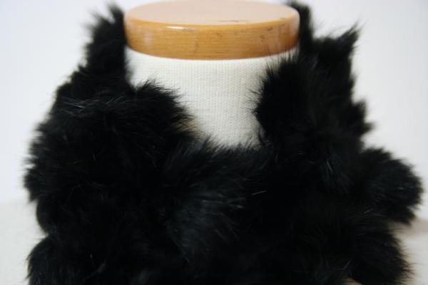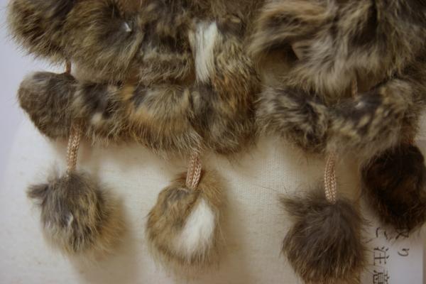 ・1玉の直径が約3cmの天然ラビットファーを4連のボンボンにしてつないだマフラーです。