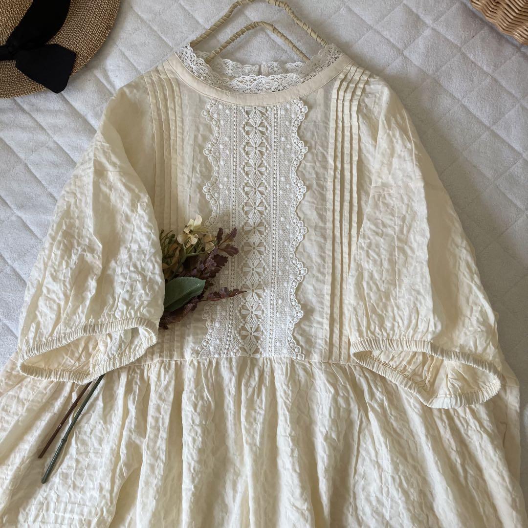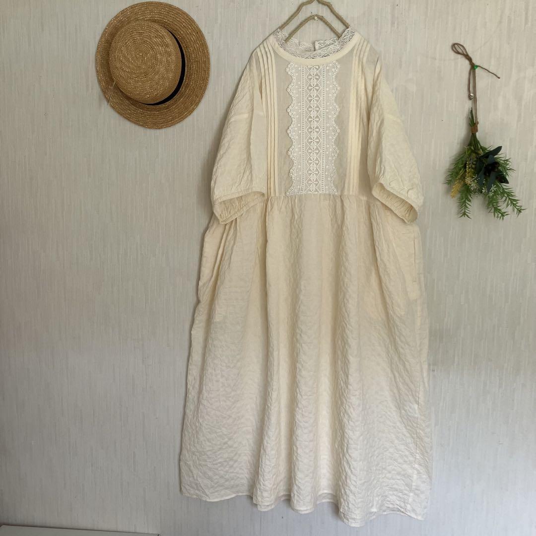 新品★サマンサモスモス★sm2★ポワン袖*前立てレース切替ワンピース*オフ