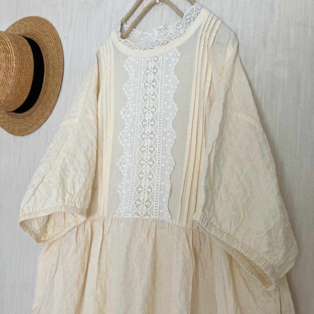 <サイズ>  M バスト124cm        着丈122cm        袖丈20cm        肩幅58cm【サイトより】
