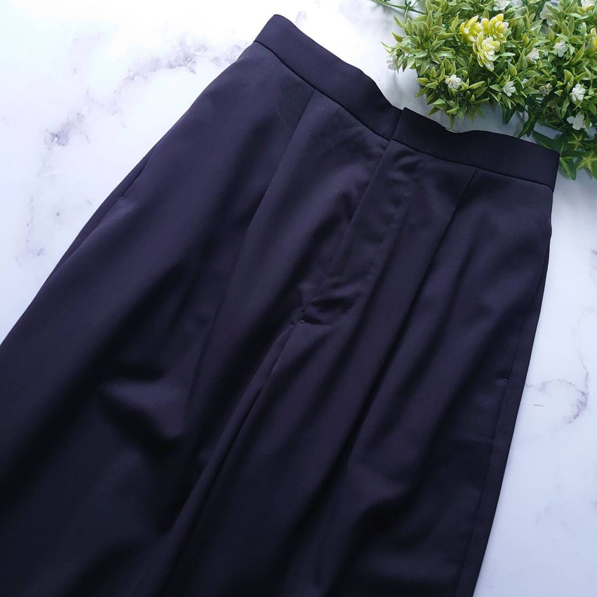 newnow ニューナウ ウールタックパンツ S テーパード ウール100% ネイビー 紺 ボトムス レディース