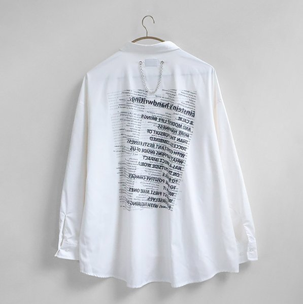 Danke Schon ◆ チェーン付 長袖 シャツ 白 Fサイズ オーバーサイズ レタリングプリント ドレスシャツ ダンケシェーン ◆MU25