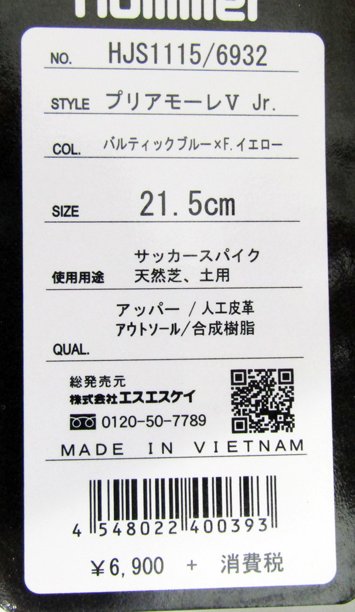 hummel HJS1115 69323 プリアモーレⅤ ジュニア スパイク バルティックブルー 21.5cm