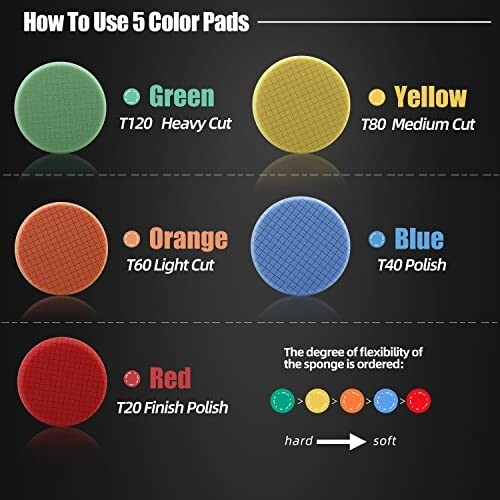 • ◆コンパウンディング&ポリッシング&ワックス◆ スポンジパッドには5つの異なる色があります:ヘビーカット用のグリーン/イエロー、ミディアムカット用のオレンジ、ライトカット用のブルー、仕上げポリッシュとワックス用のレッド、日焼け止め、車の傷の除去に最適です。