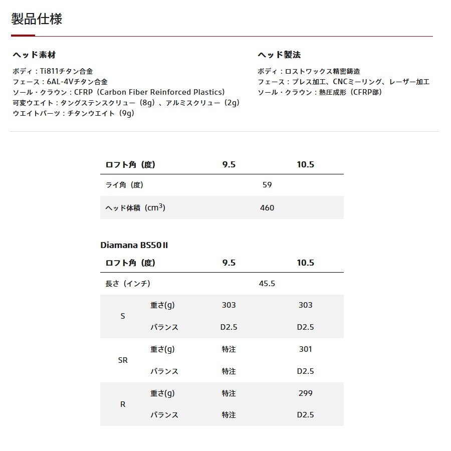 | 番手 | 1W | ロフト | 10.5° | ||