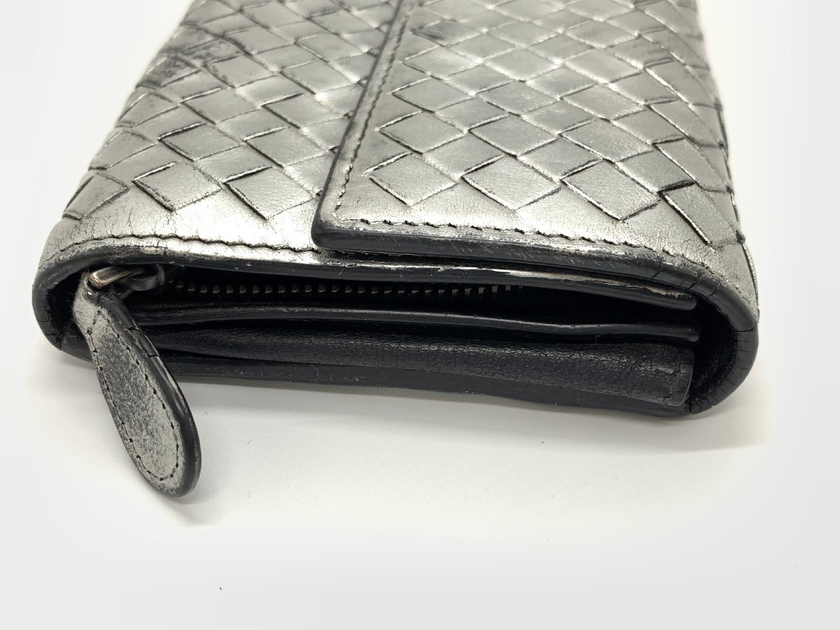 | 【商品名】BOTTEGA VENETA ボッテガヴェネタ イントレチャート 二つ折り財布 長財布 シルバー ☆良品☆[84-1004-2E12] | |||||