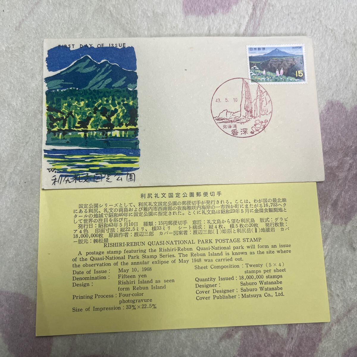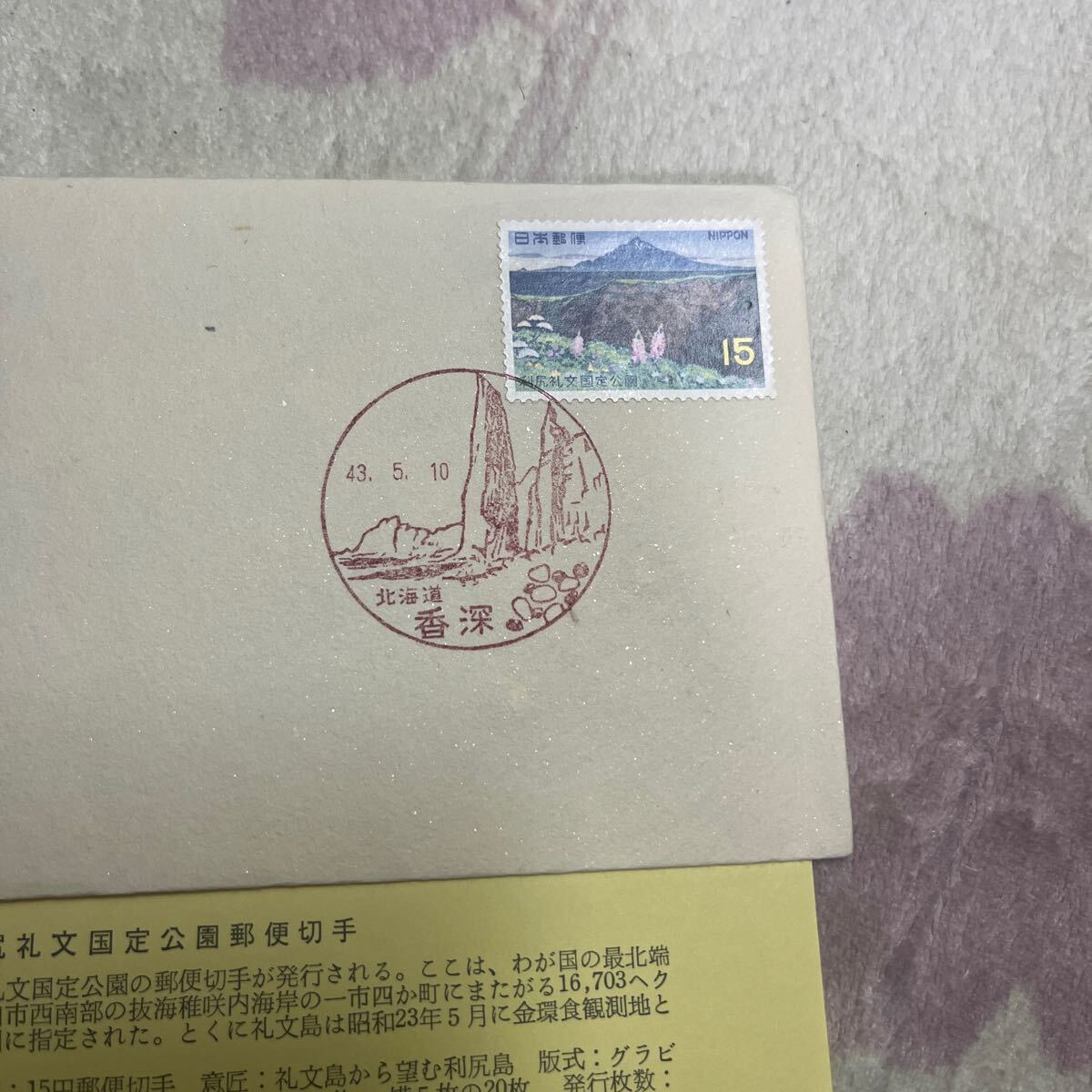 昭和43年 利尻礼文国定公園記念切手 初日カバーFirst day Cover 北海道香深印 【送料110円】(A)