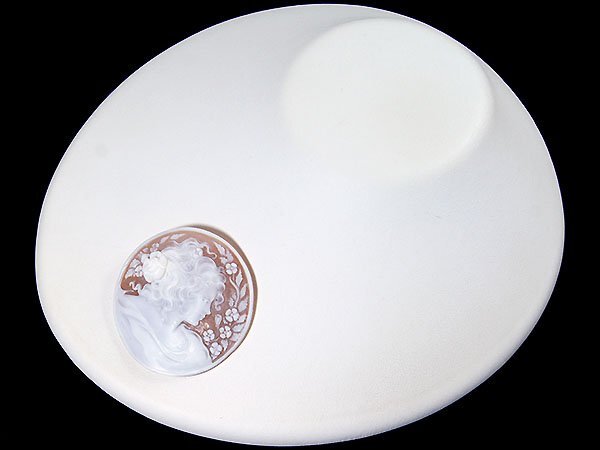 優雅な女性と花を繊細に彫刻で演出した、素晴らしい高級シェルカメオルースです!