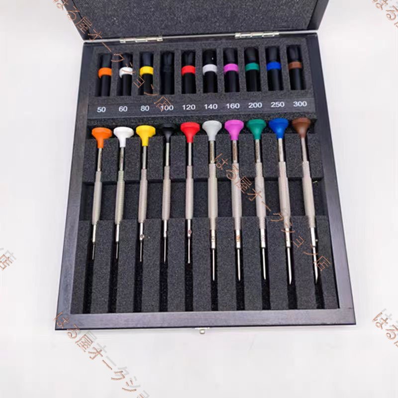 完全に 10 のセットステンレス鋼人間工学色コード化されたドライバー木製ボックス。