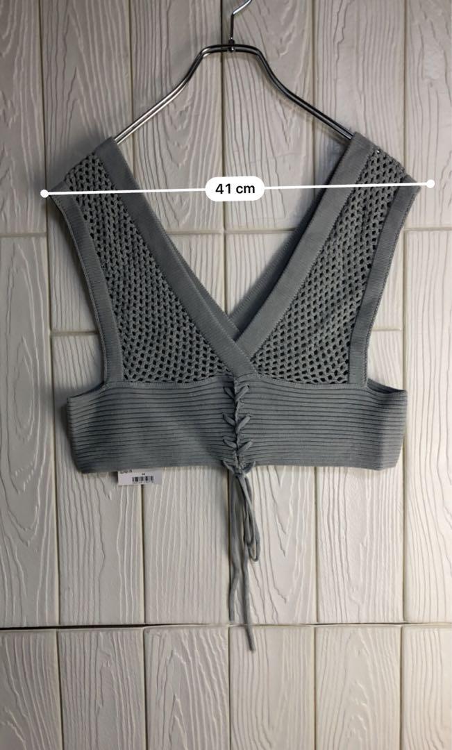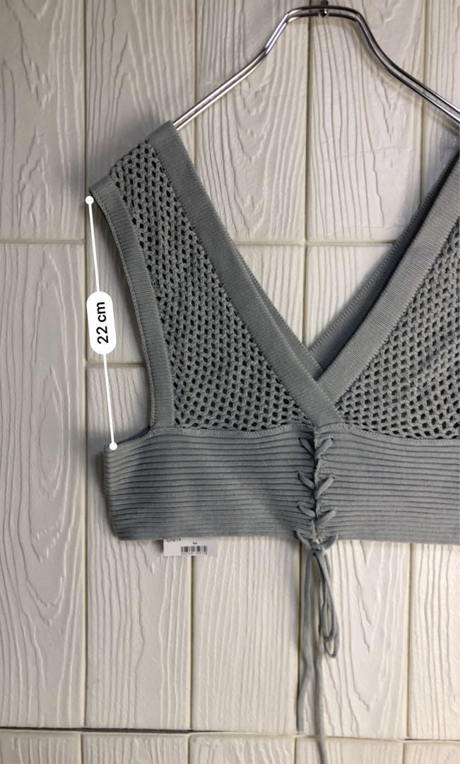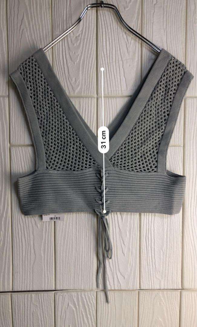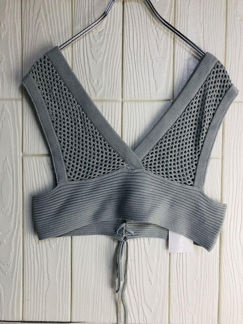 メッシュデザインのグレーのビスチェ、スタイリッシュで通気性に優れています。