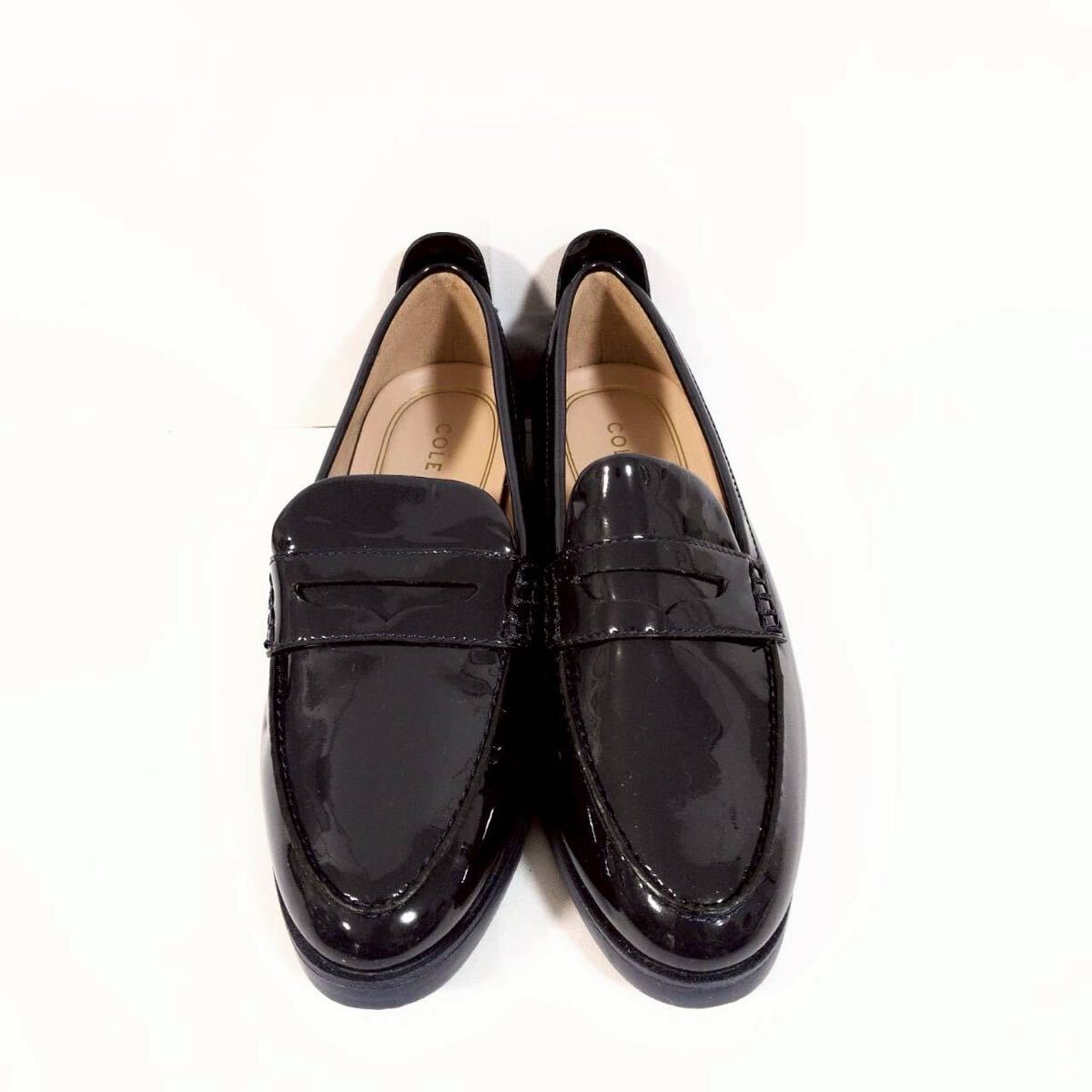 W879【COLE HAAN】コールハーン ペニーローファー 靴 エナメル 光沢 ビジネス デイリーユース タウン ブラック レディース サイズ24cm/HF