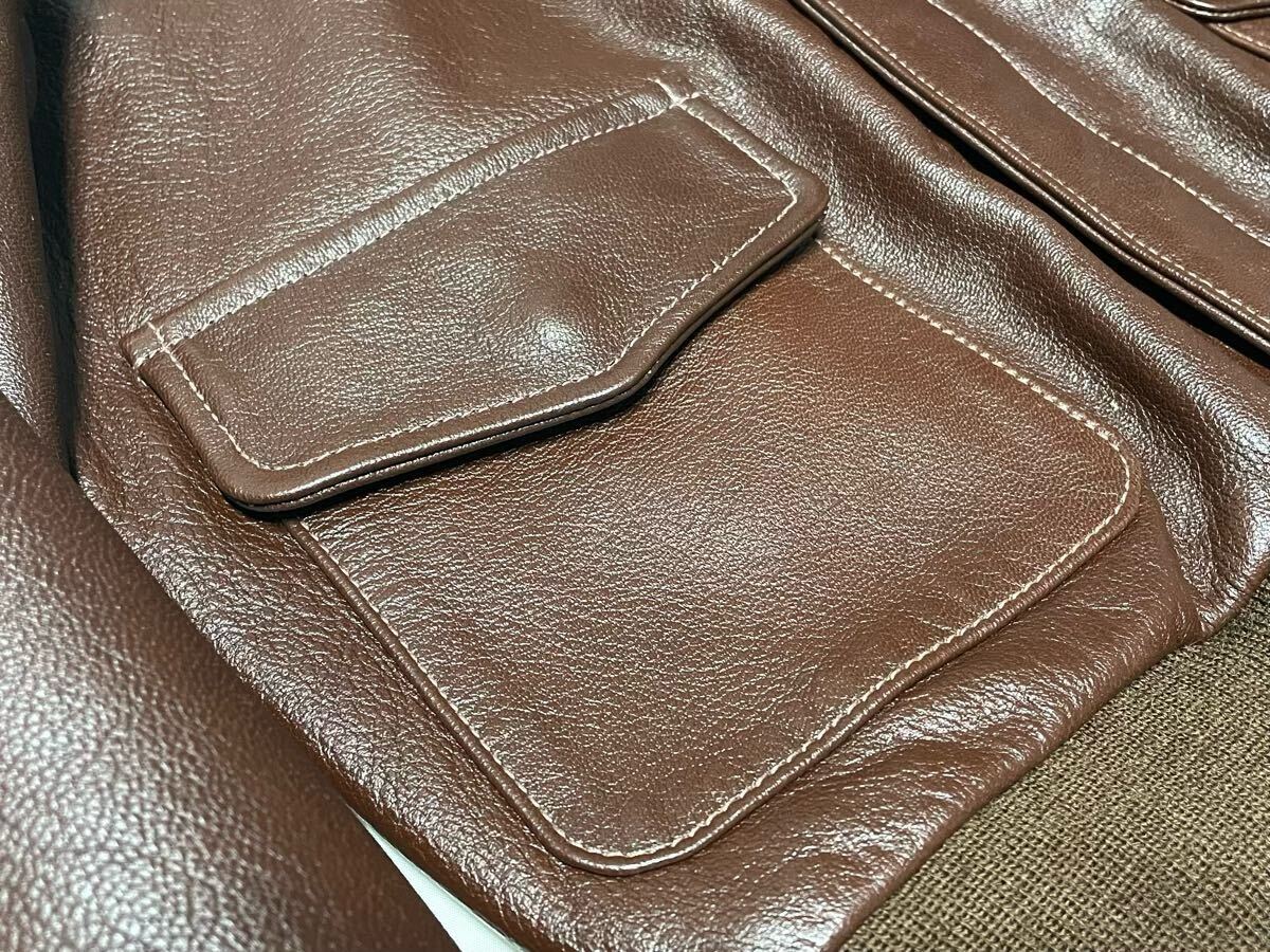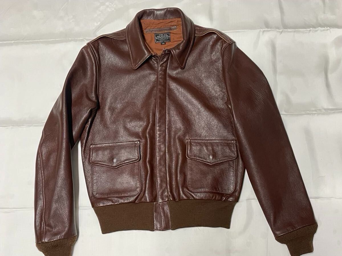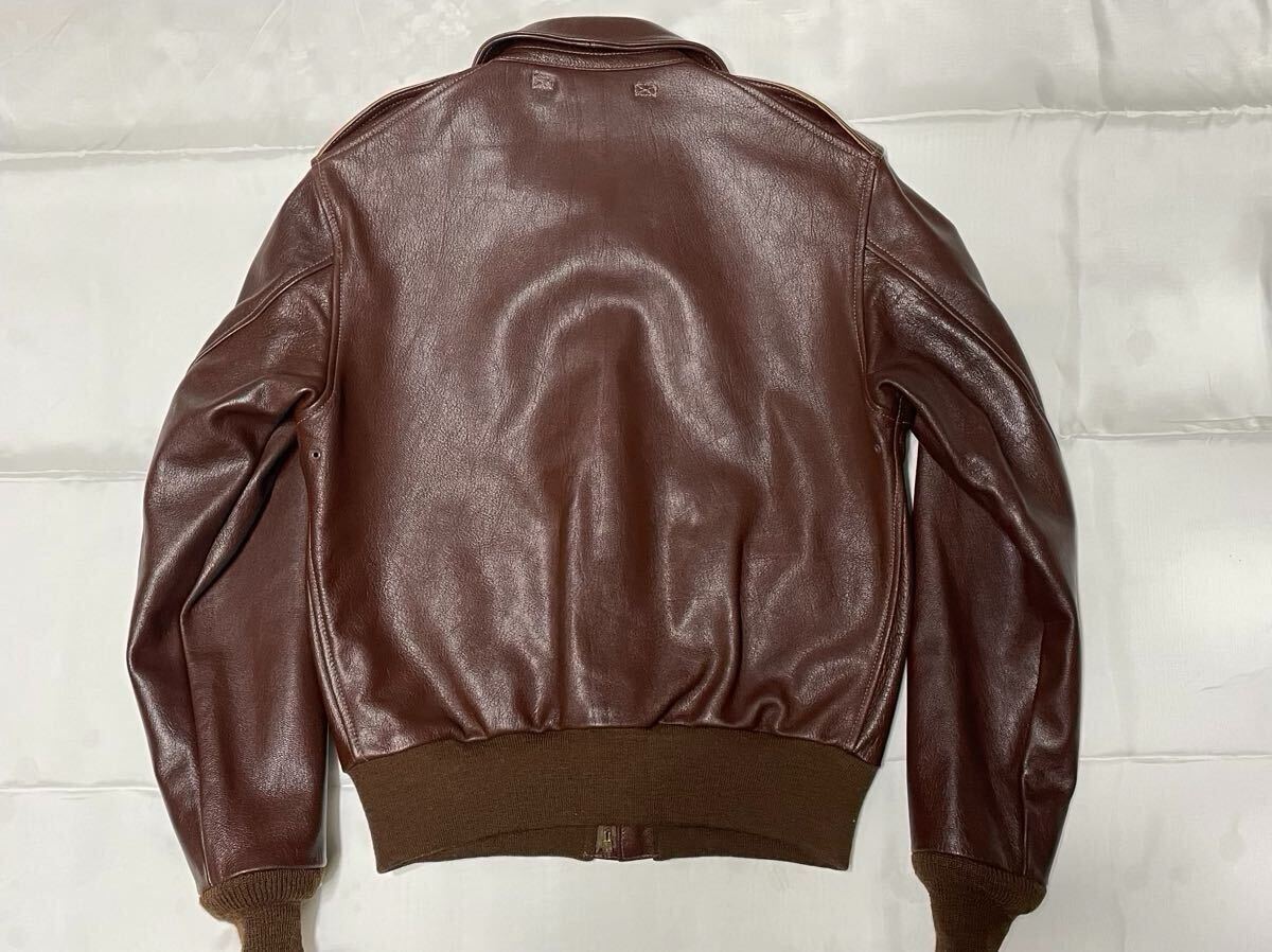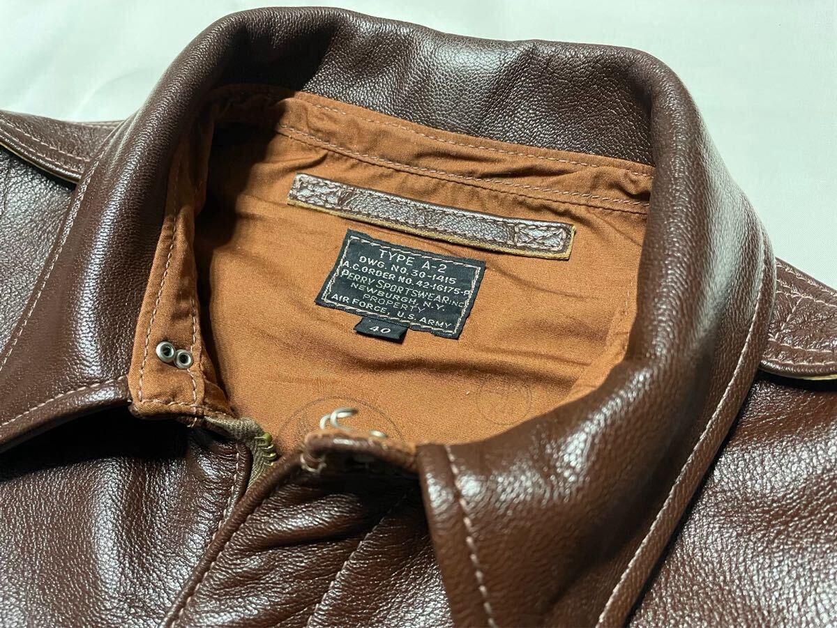 仕様変更カスタムオーダーによりゴートスキンで製作されたものですので(実際にペリースポーツ社はゴートスキン製A-2も多数生産納入しています)おそらく世界に1着しか存在しない超稀少なA-2になります。