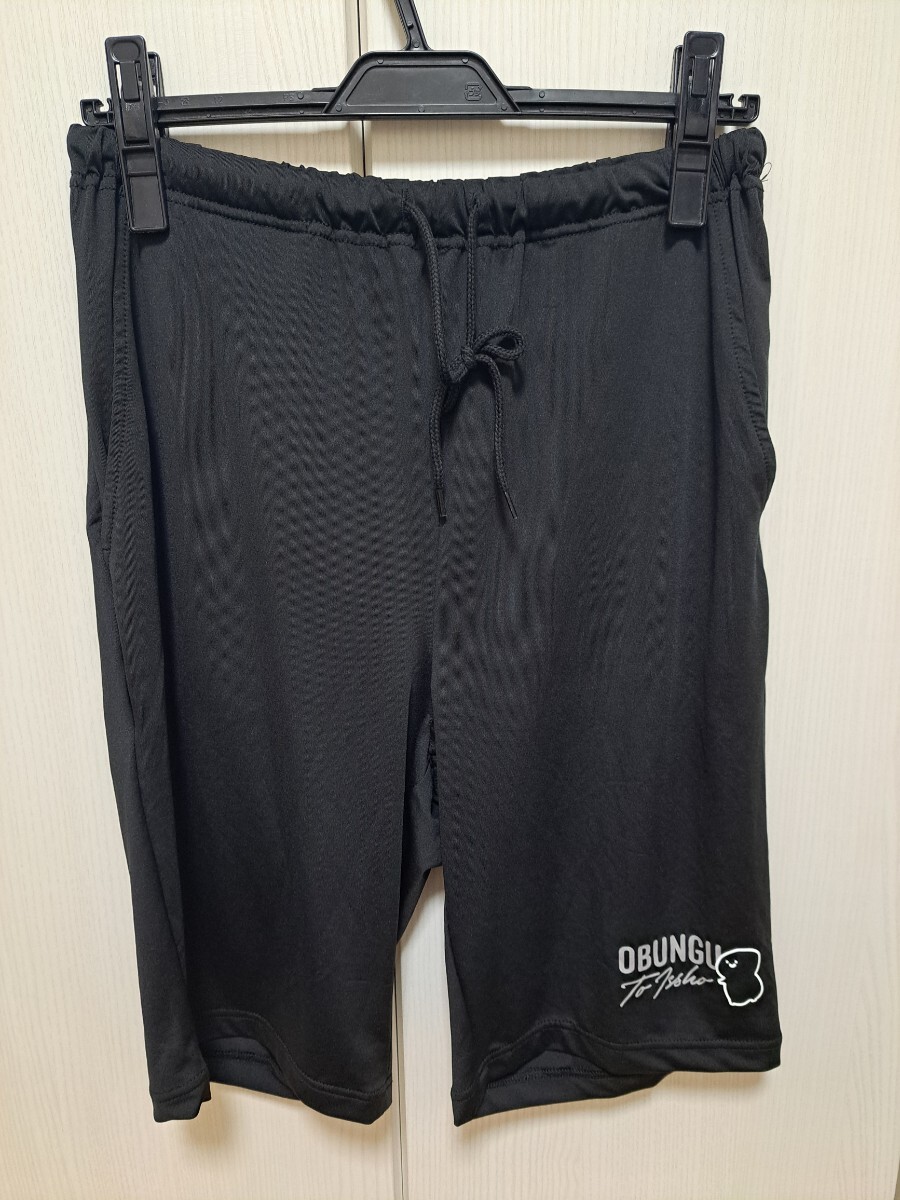 ボトムのウエストはゴムと紐で楽チンです。左のももにワンポイントのプリントが入っています。