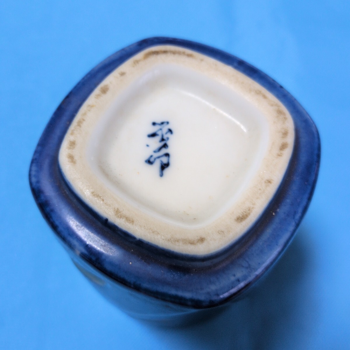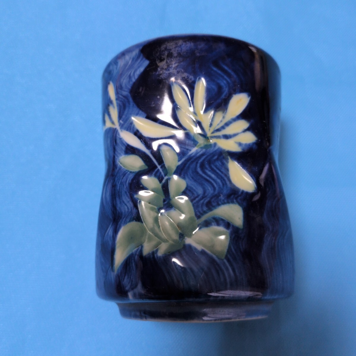 湯呑み陶器花柄藍色昭和レトロアンティーク