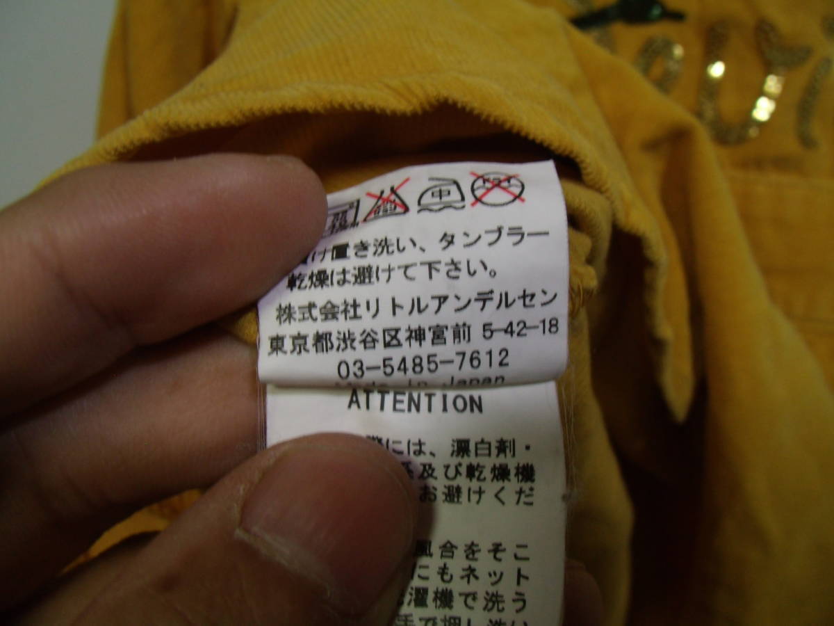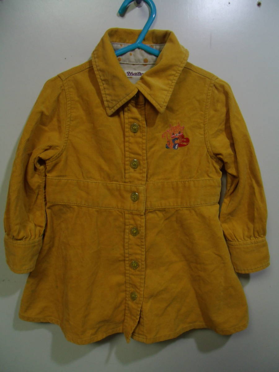 全国送料無料 ヒステリック HYSTERIC リトルアンデルセン製 子供服キッズベビー女の子 オレンジ色コーデュロイ長袖ワンピース 80 着丈45cm