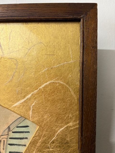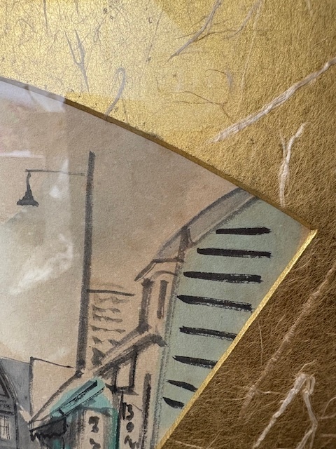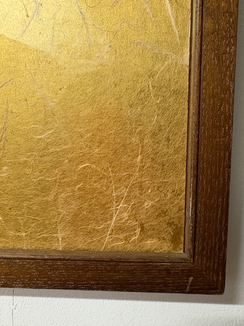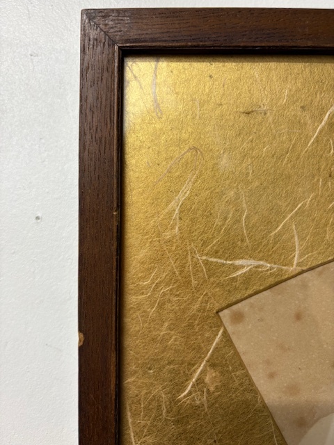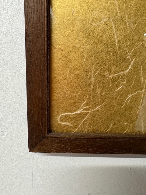 木製のシンプルな額装に、和紙素材のゴールドのマットがよく合います。